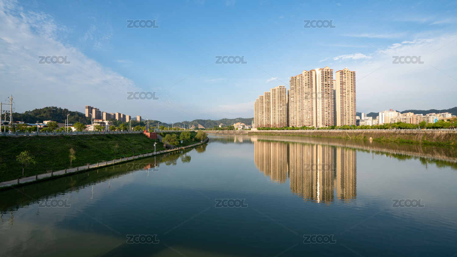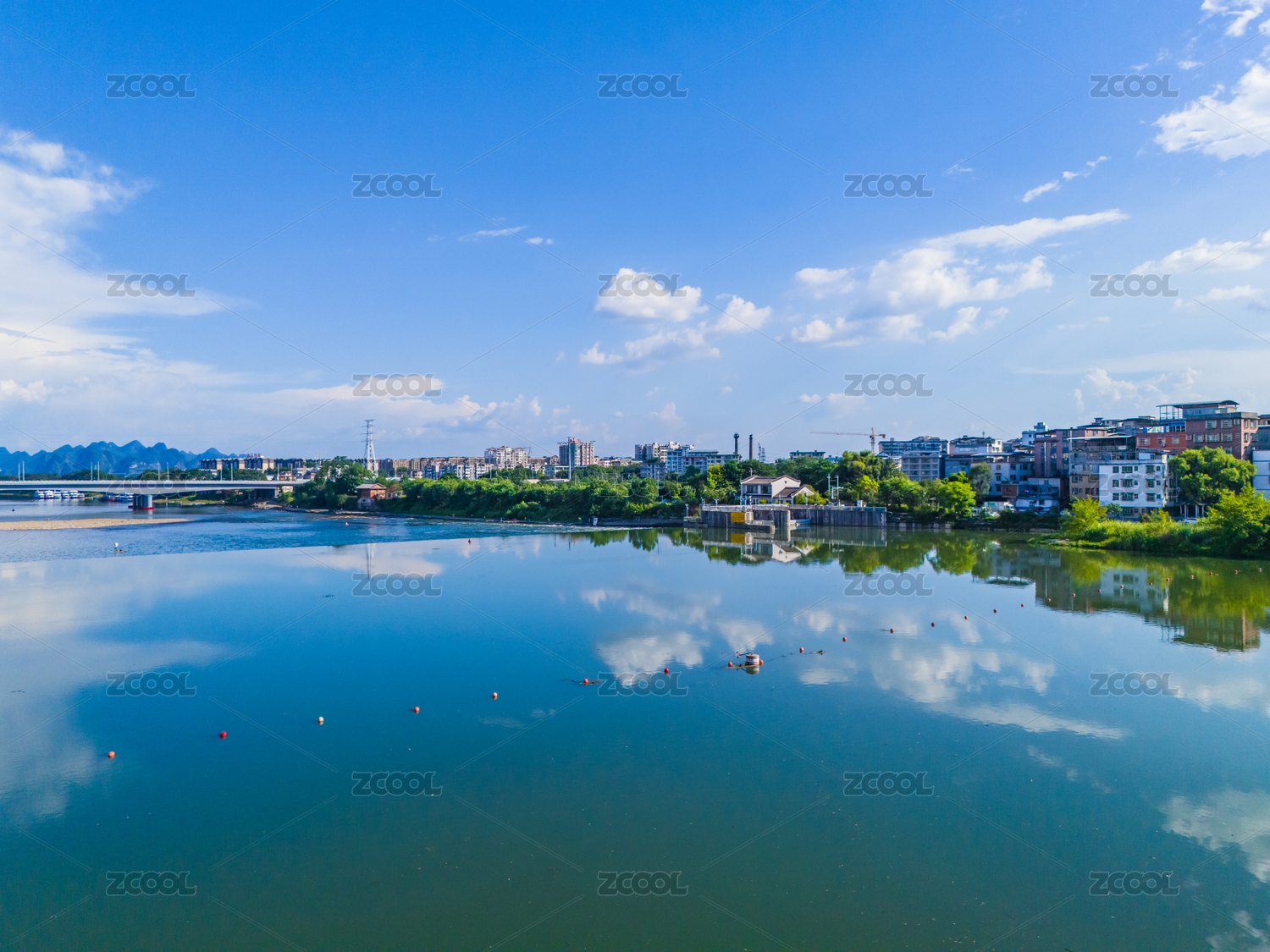 蓝天白云,河流,武义县,风景,倒影,河流两岸,江水,拱桥,远景,水面