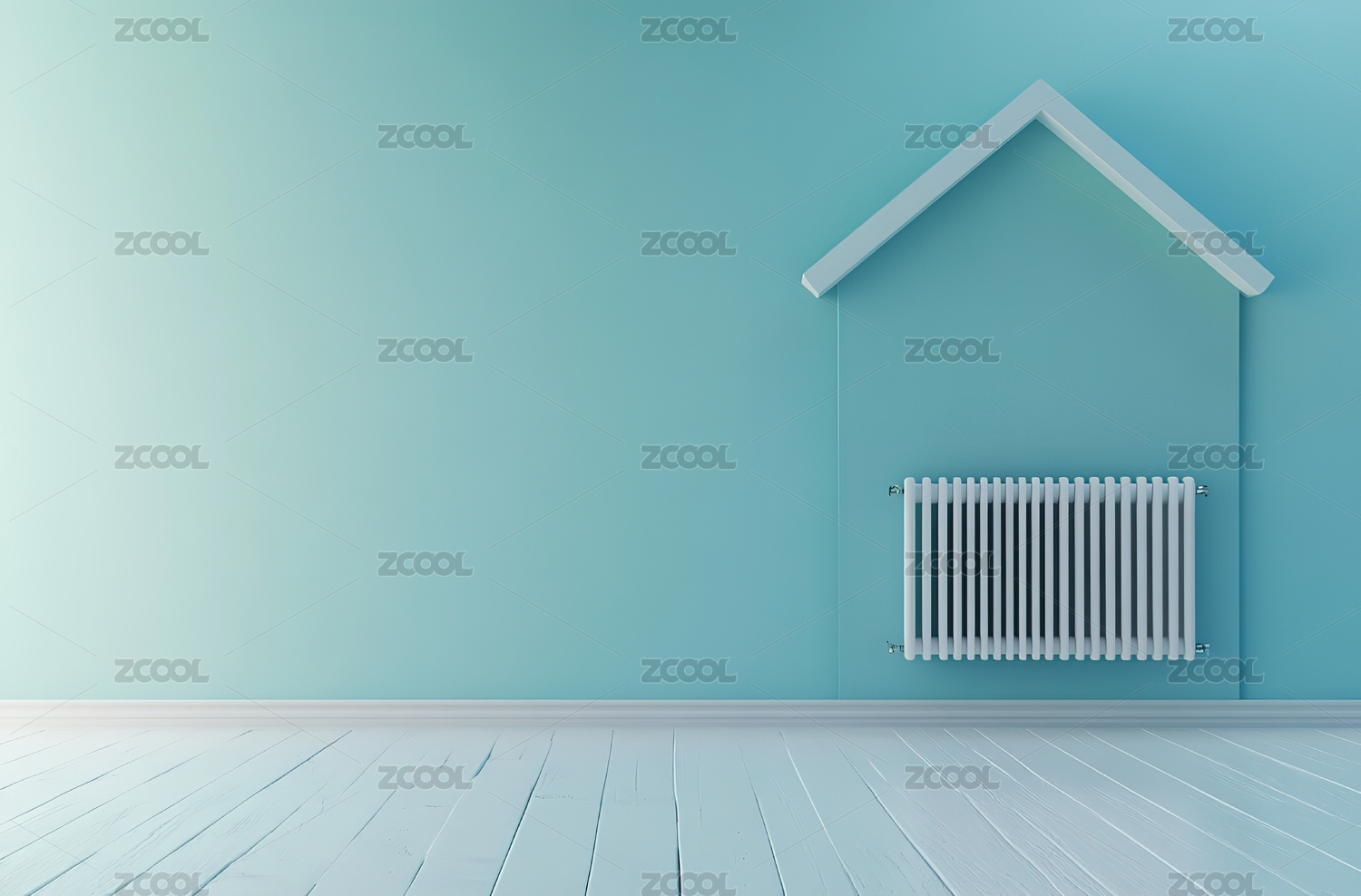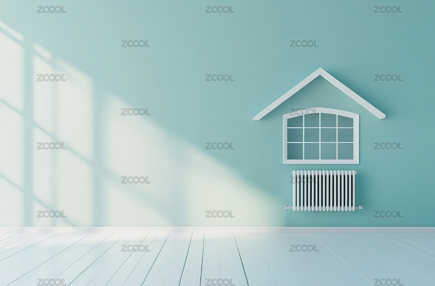 暖气上的房子和笑脸,冬季北方供暖主题图片