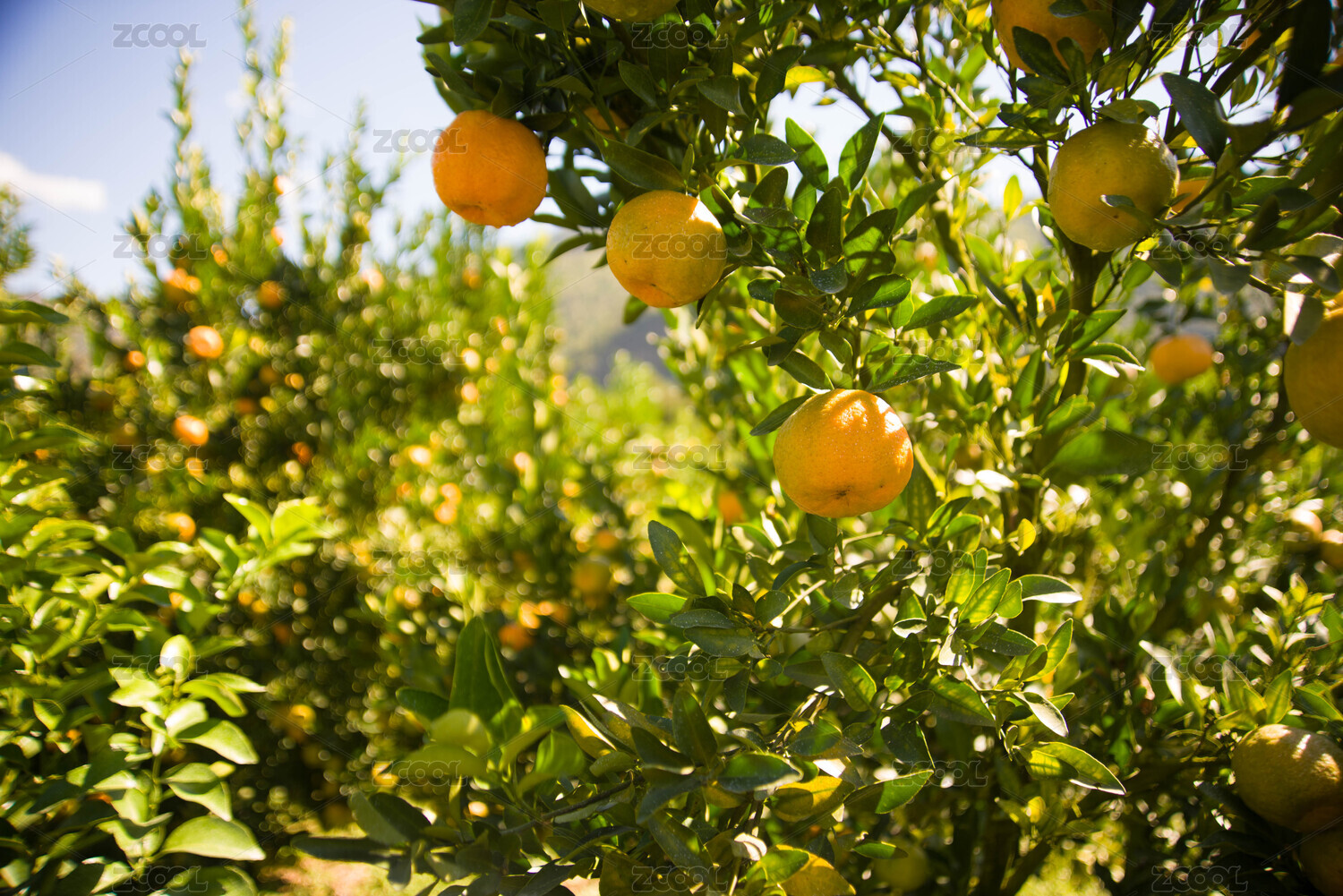 果园里结果的橙树