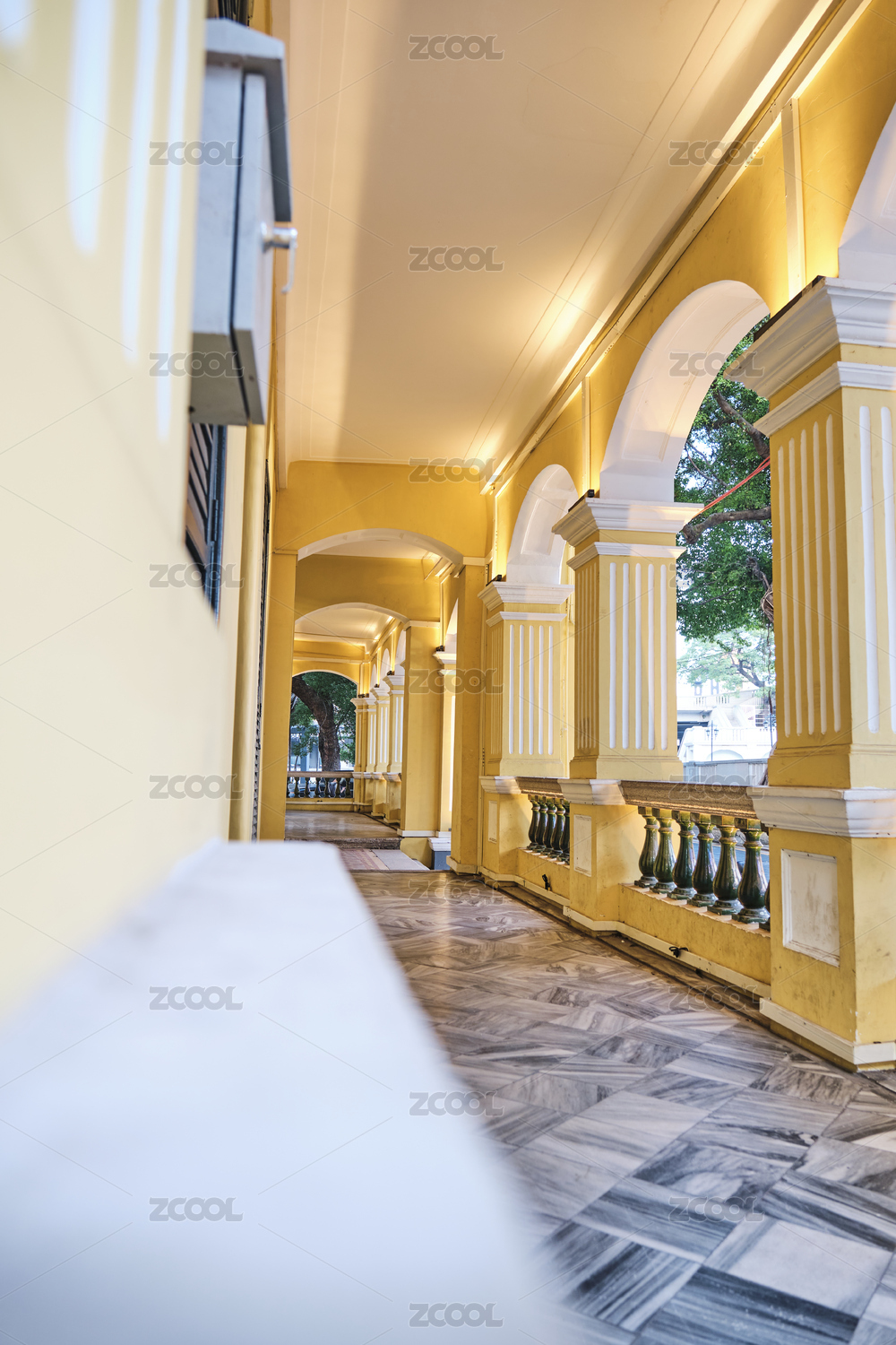 中国广州沙面岛欧式建筑走廊