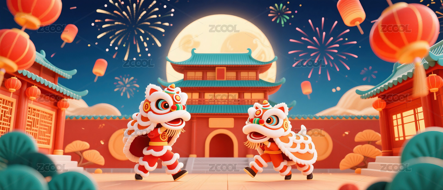 春节舞狮节日插画庆祝虎年新年国潮活动海报