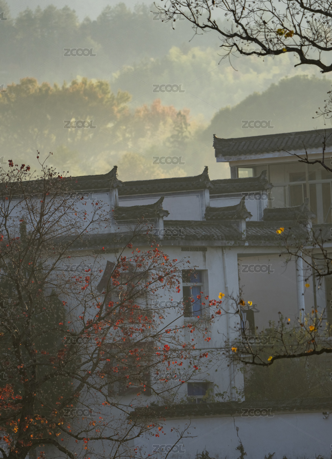 秋色,秋景,红叶,树木,乡村,村庄,建筑,徽派建筑,墙,自然
