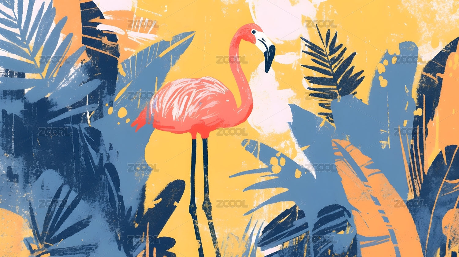 火烈鸟与热带花卉