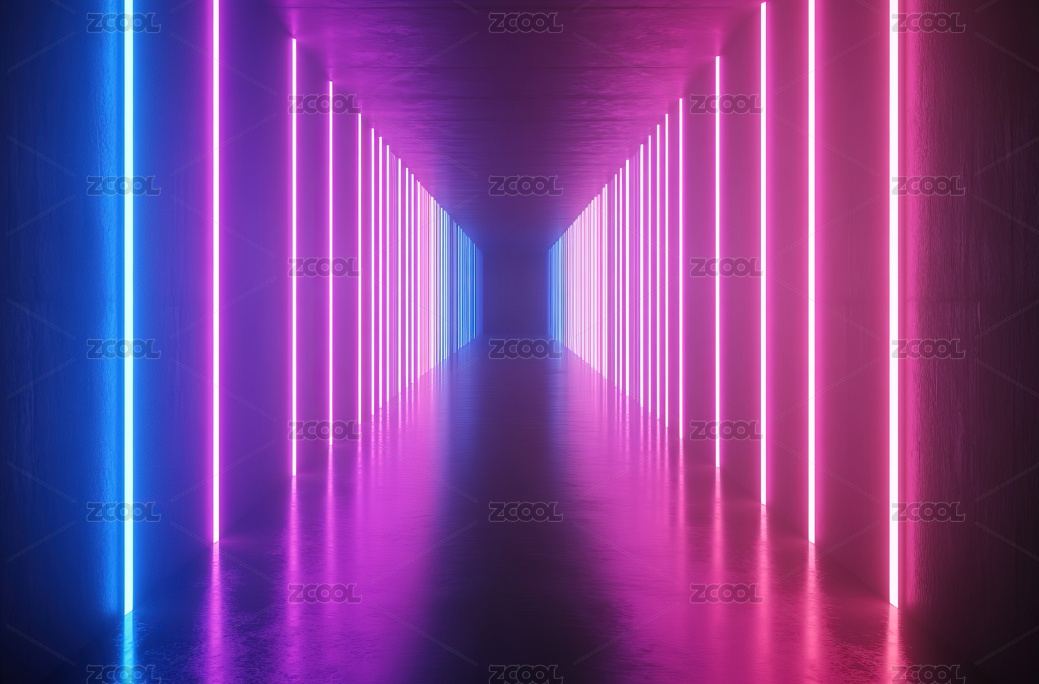 抽象霓虹灯发光几何线条3D渲染商务背景