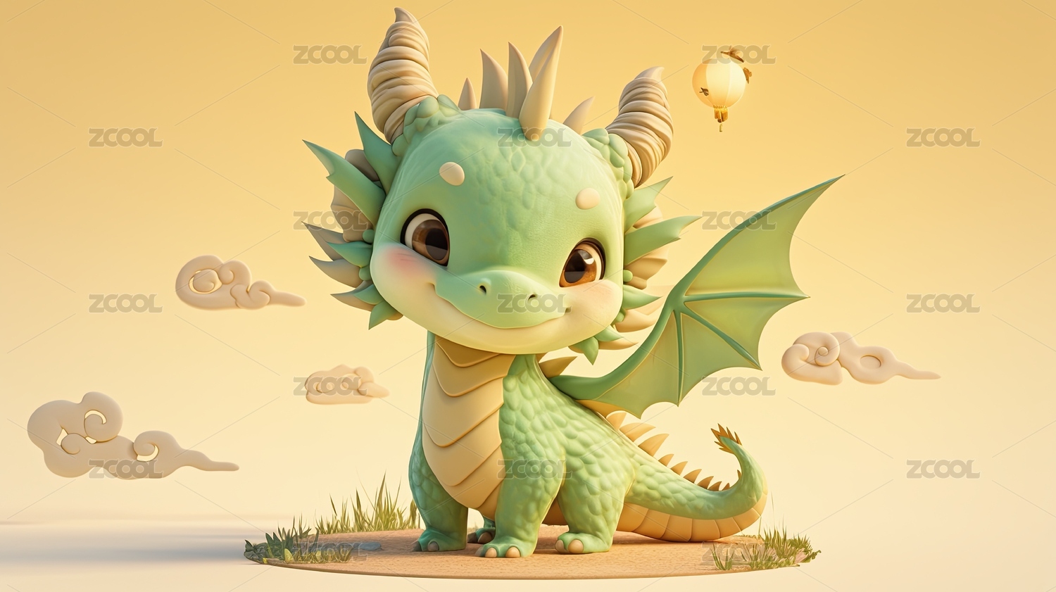 插画,可爱,卡通,三维立体,3D,小红龙,羽绒服,祈祷,橙色背景,秋叶