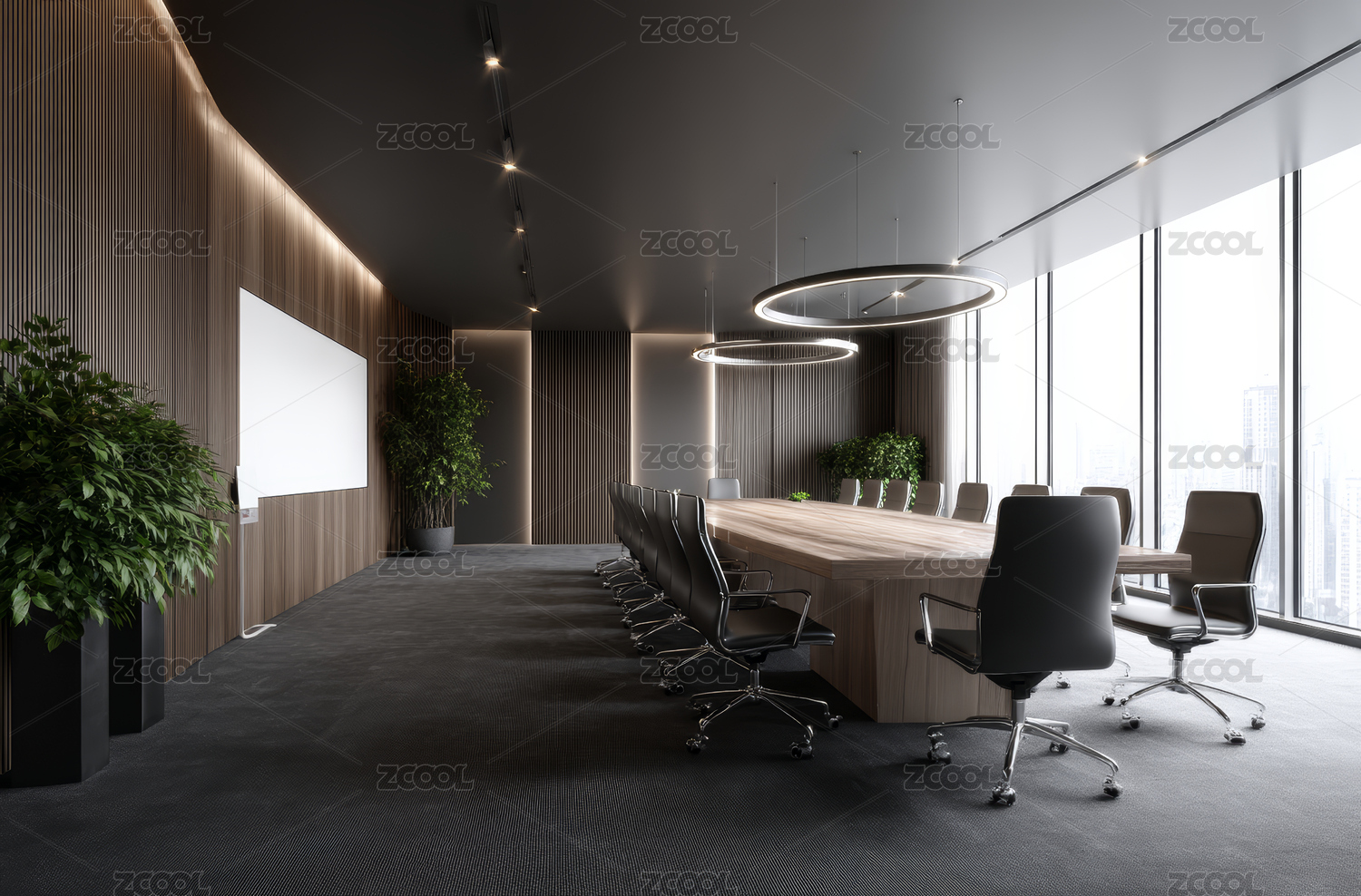 落地窗前的高层会议室与城市天际线