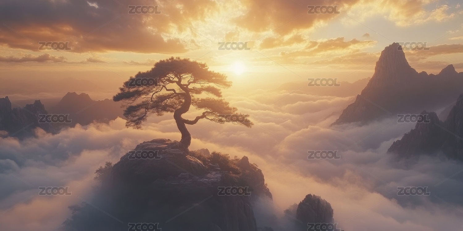 仙境山峰云海古寺