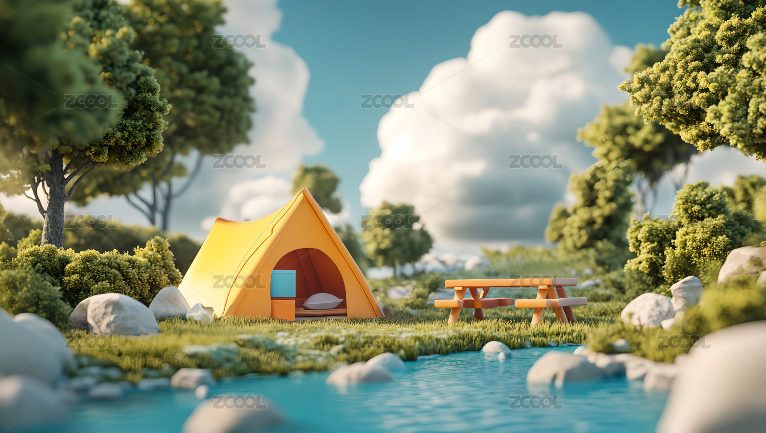 微缩,景观,露营,光线,绿色,可爱,春季,烧烤,鲜花,户外