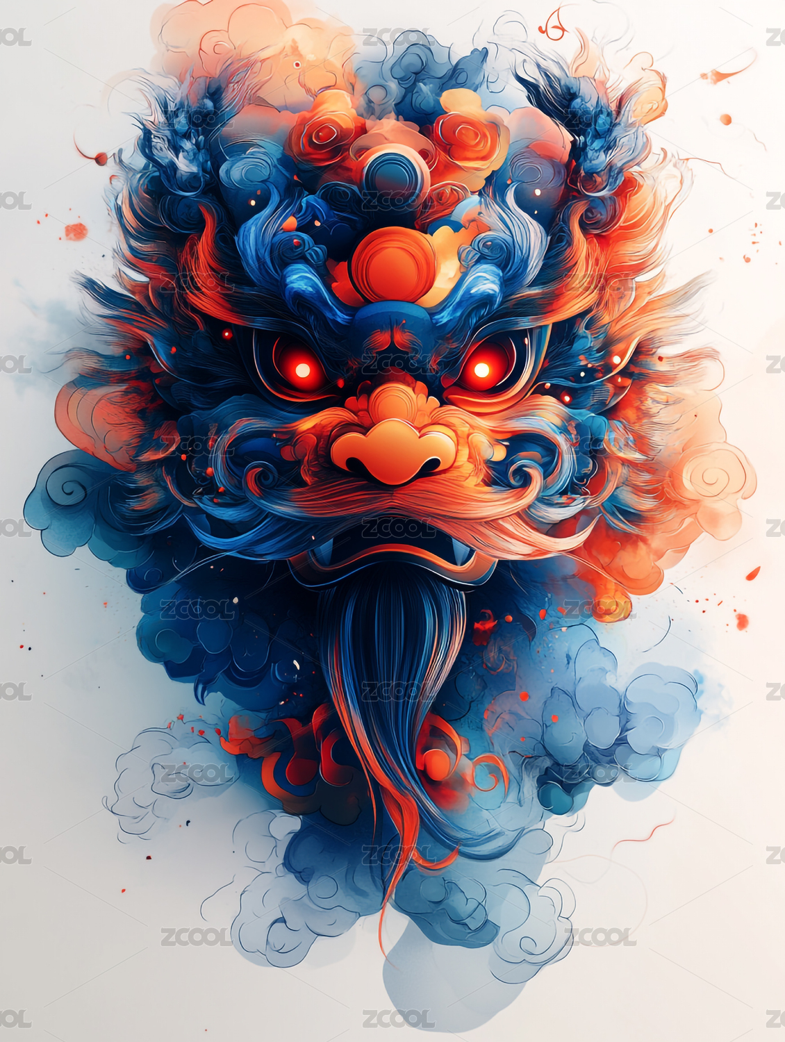 国潮舞狮插画背景