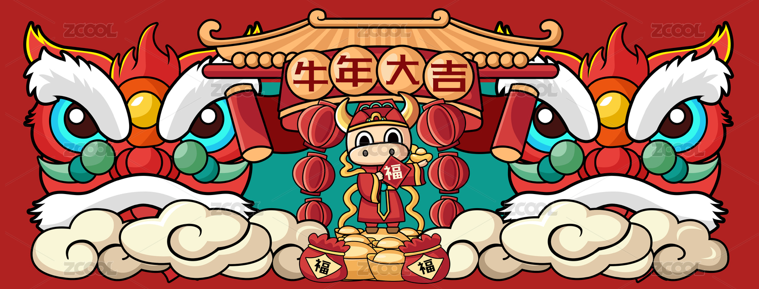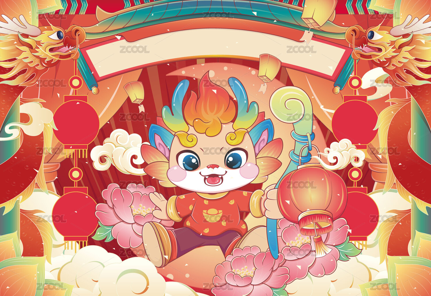 国潮,喜庆,龙年,春节,2024,新年,年,拜年,中国,神兽
