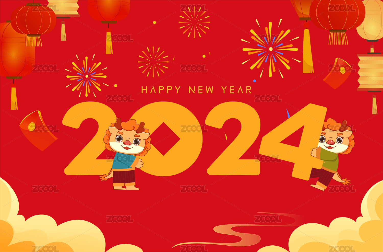 国潮,新年,节日,春节,喜庆,龙年,龙,2024,插画,贴纸