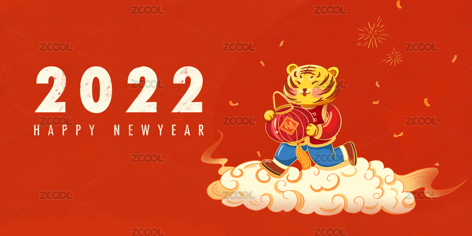 三只可爱的老虎在牌坊前庆祝新春佳节
