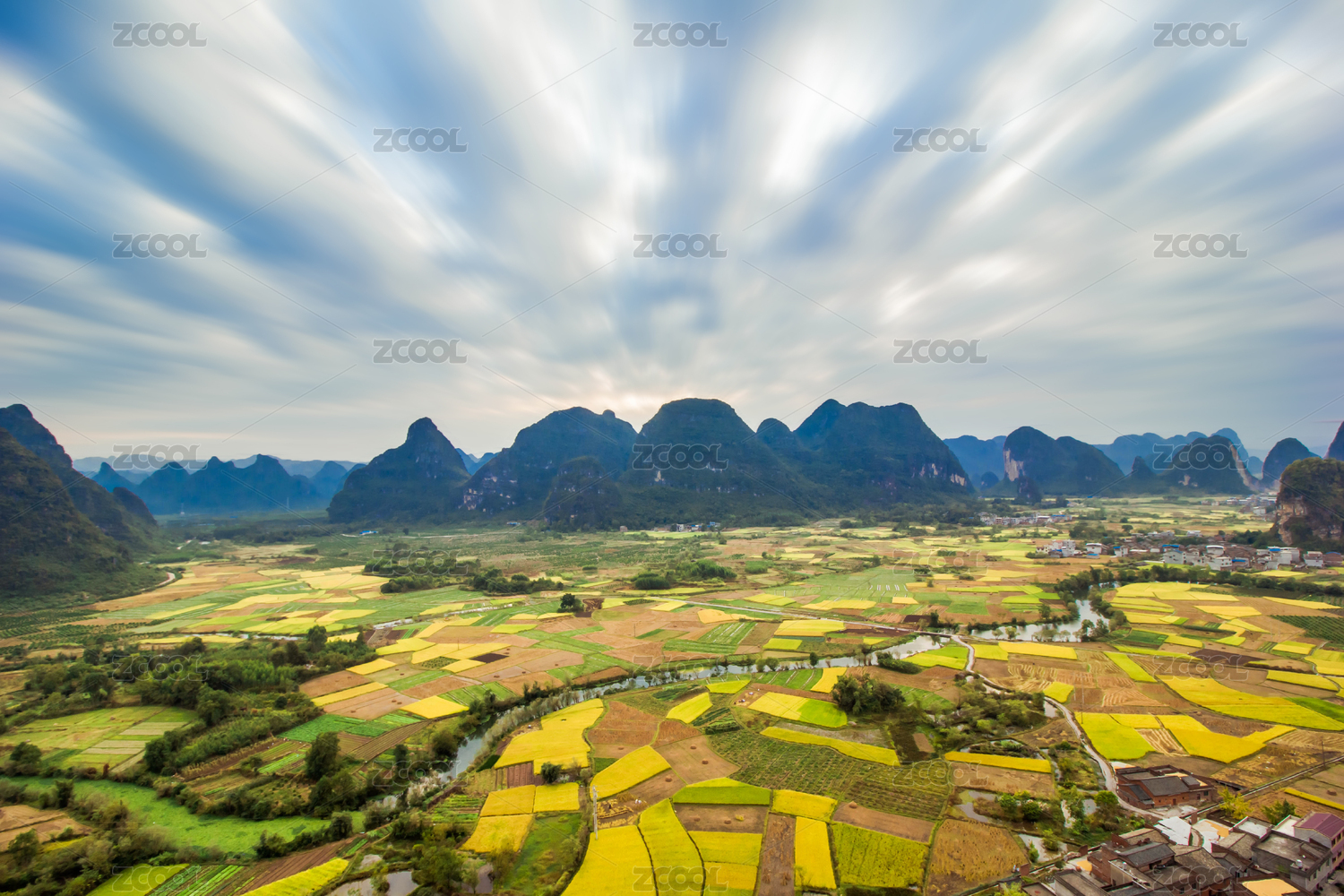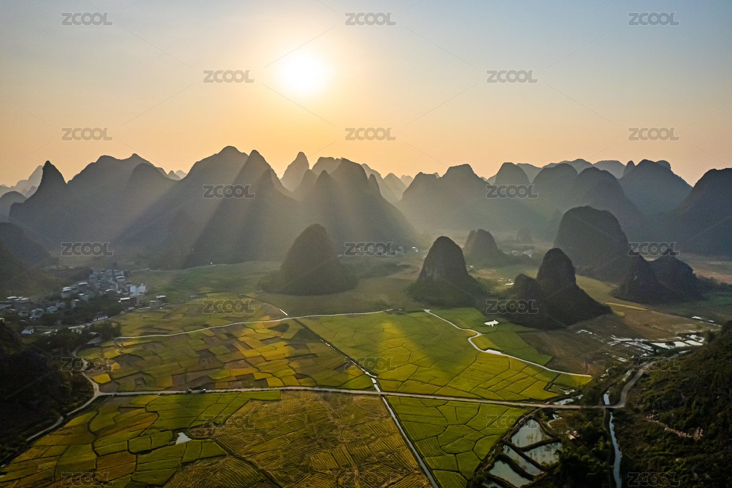桂林山水田心村状元桥农田日出喀斯特地貌