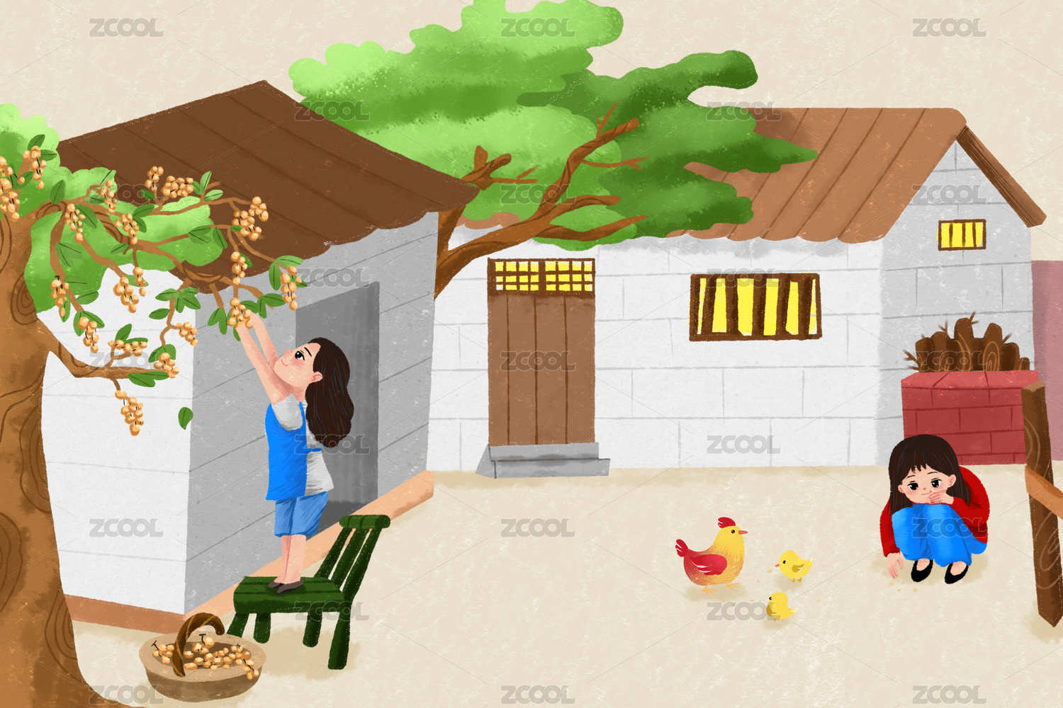 农村庭院背景插画