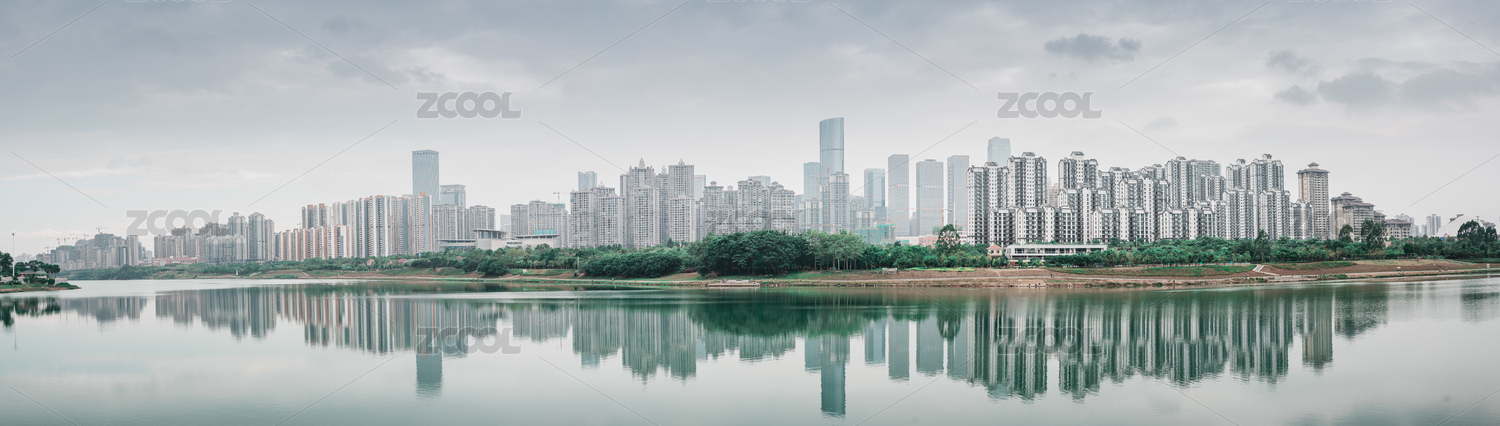中国武汉空旷的长江与现代城市建筑天际线全景