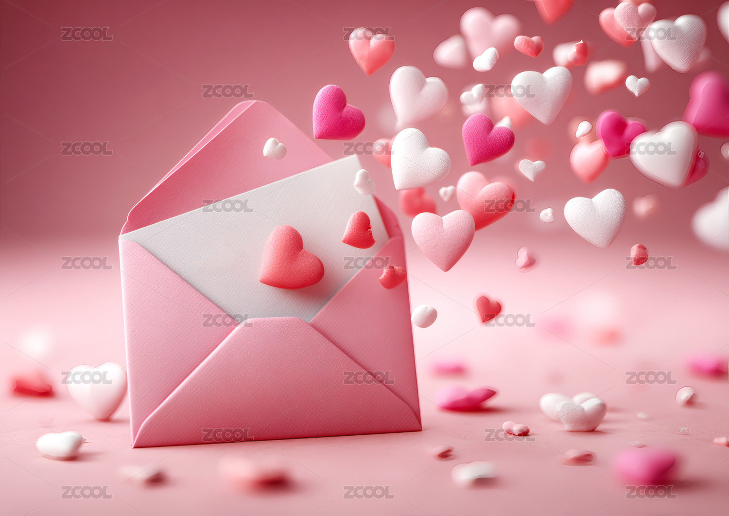 爱心,信封,情人节,浪漫的,特写,情书,3D,插画
