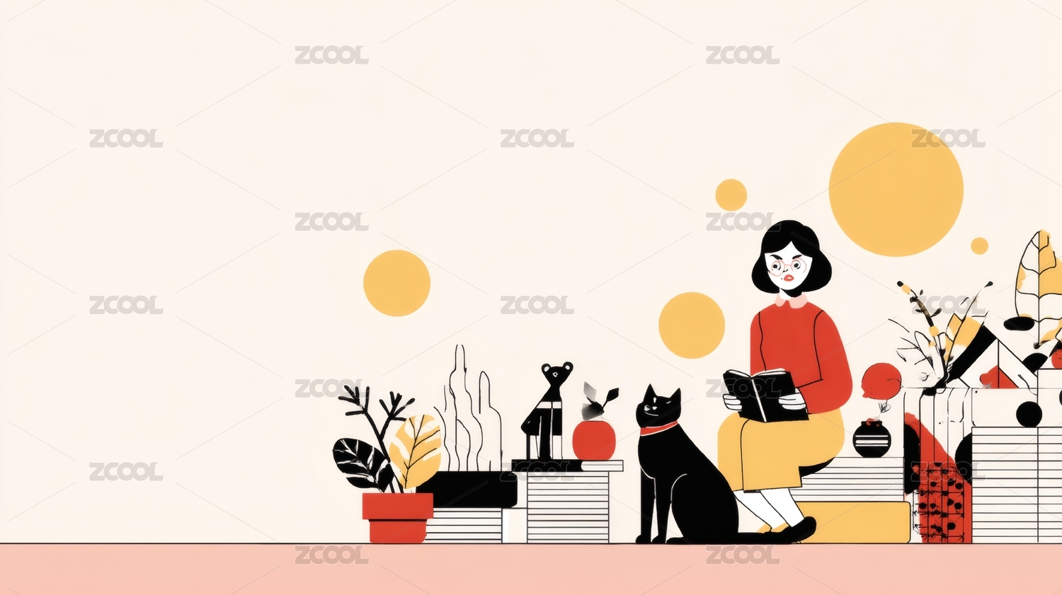 女孩与猫扁平插画