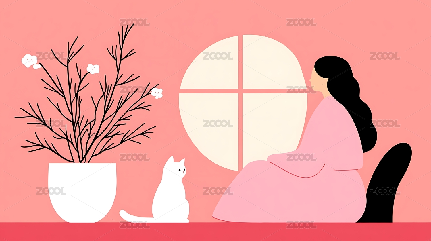 温馨家居小场景插画
