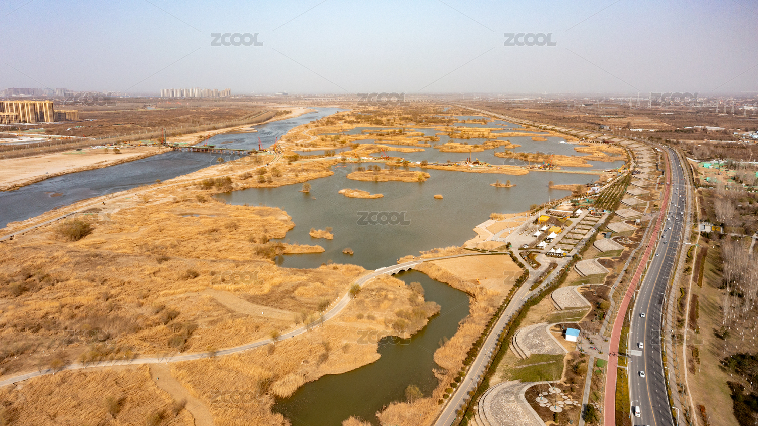 山东枣庄月亮湾国家湿地公园秋天的风景