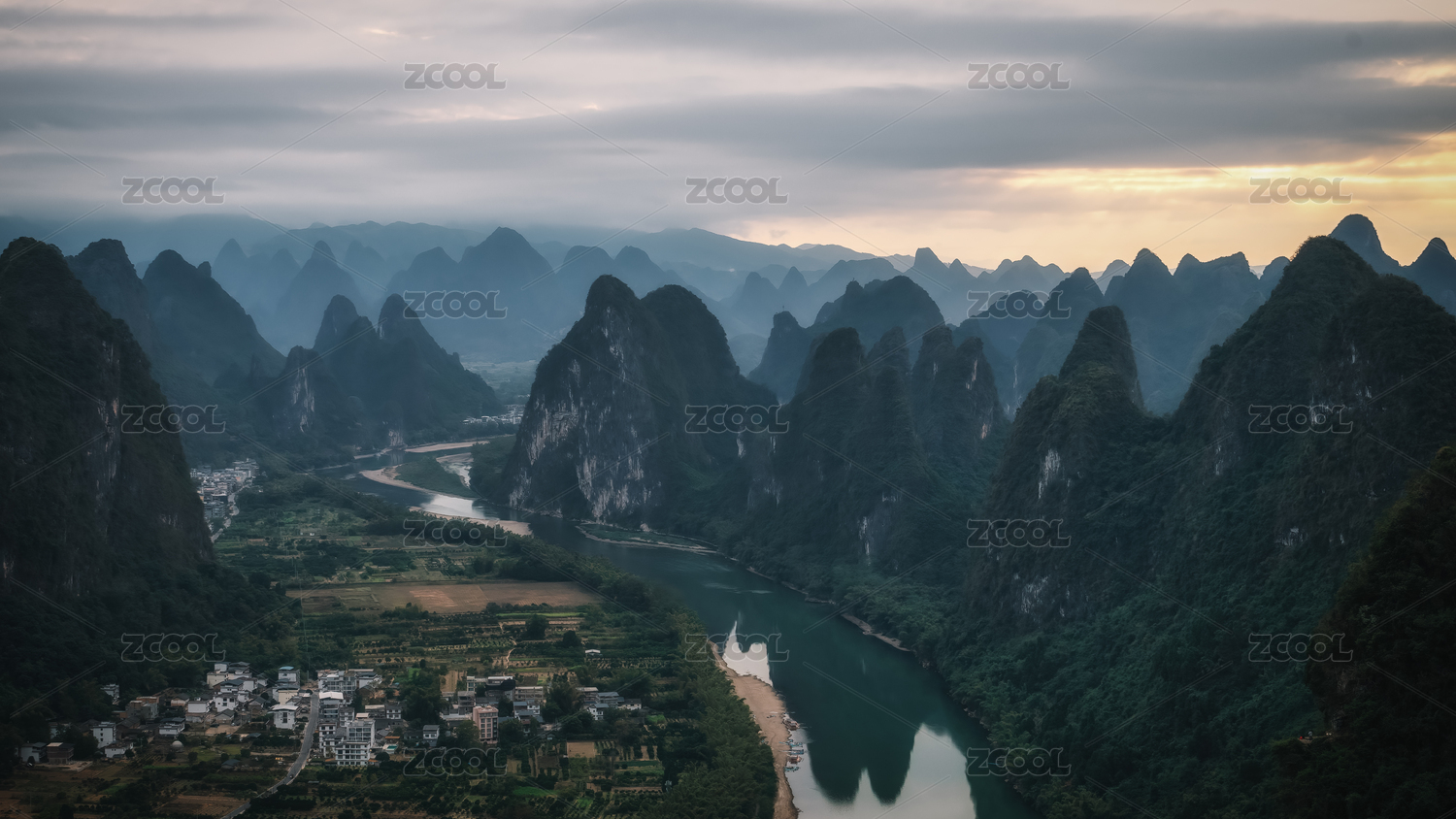 中国广西省桂林市阳朔县喀斯特夕阳景色