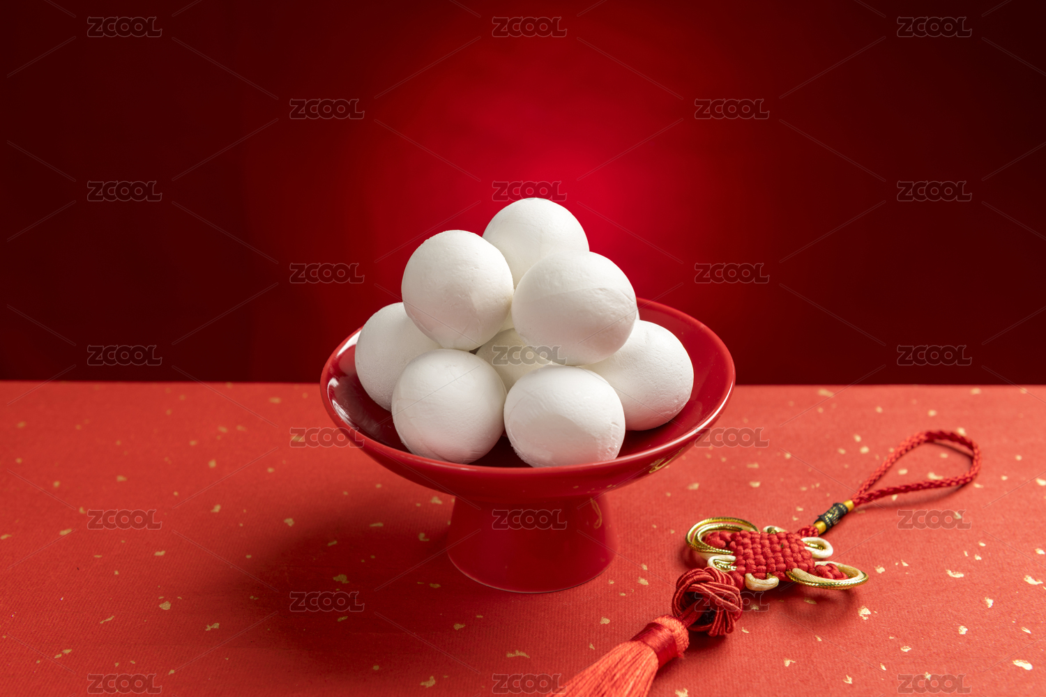 红色背景汤圆特写
