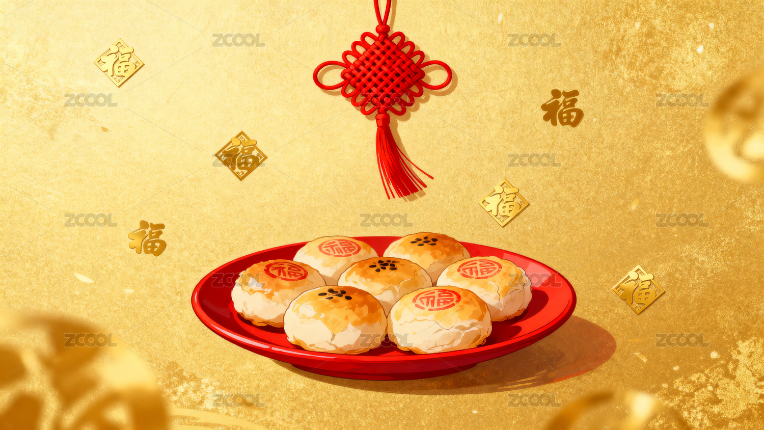 春节福字月饼装饰图