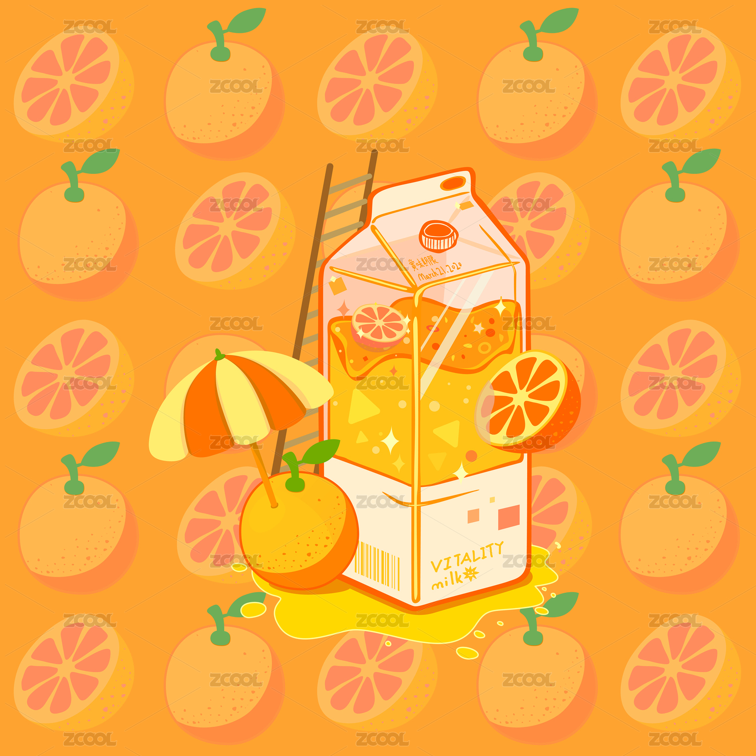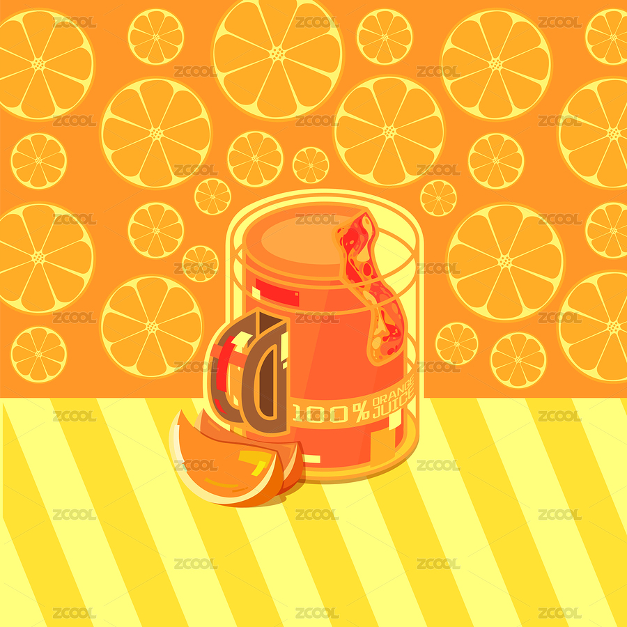 果冻,矢量,插画,橙子,橙汁,橙色,杯子,卡通,少女,可爱