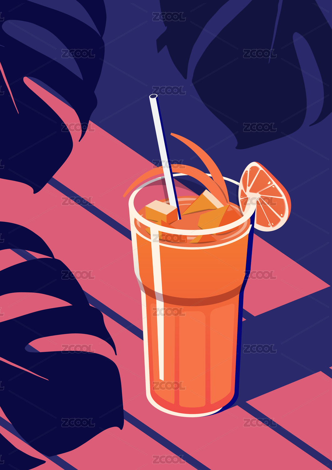 夏季水果茶果汁夏日饮品饮料活动促销插画