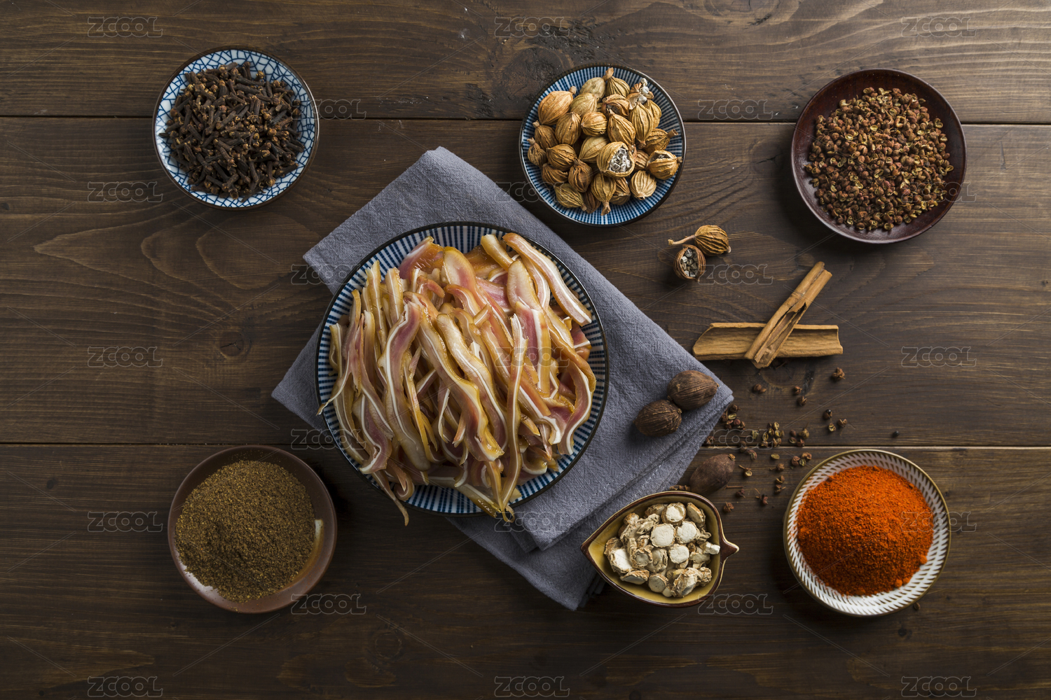 鲜嫩弹牙的麻辣卤猪耳和香辛调味料