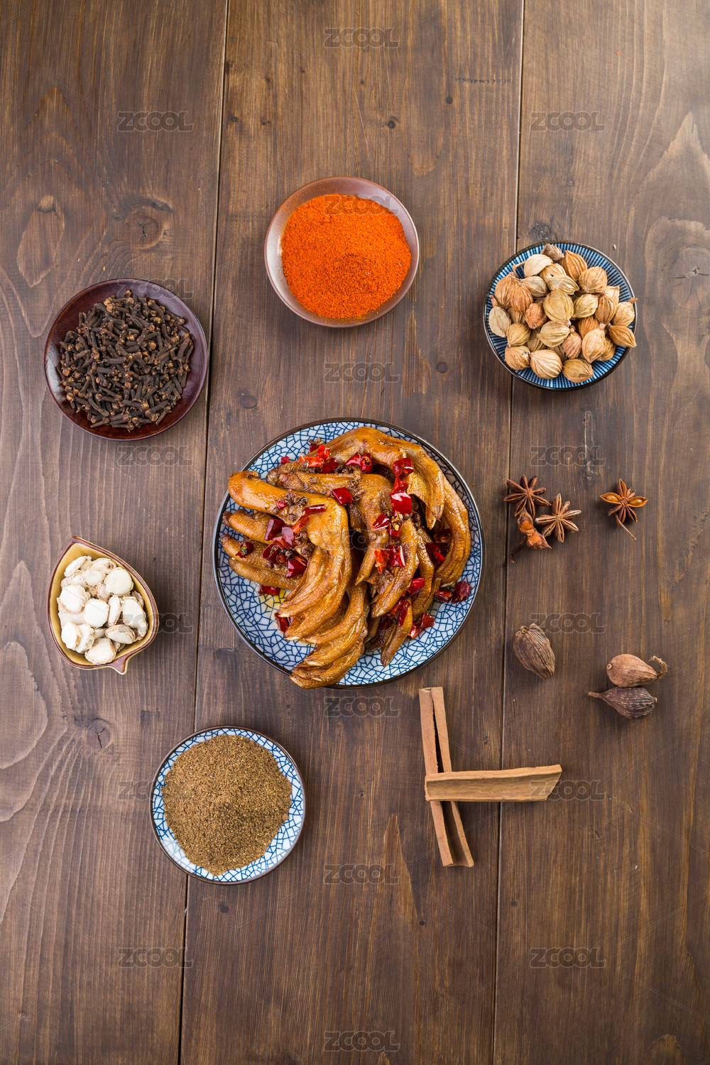香辣爽口的麻辣卤鸭掌和多种香辛调味料