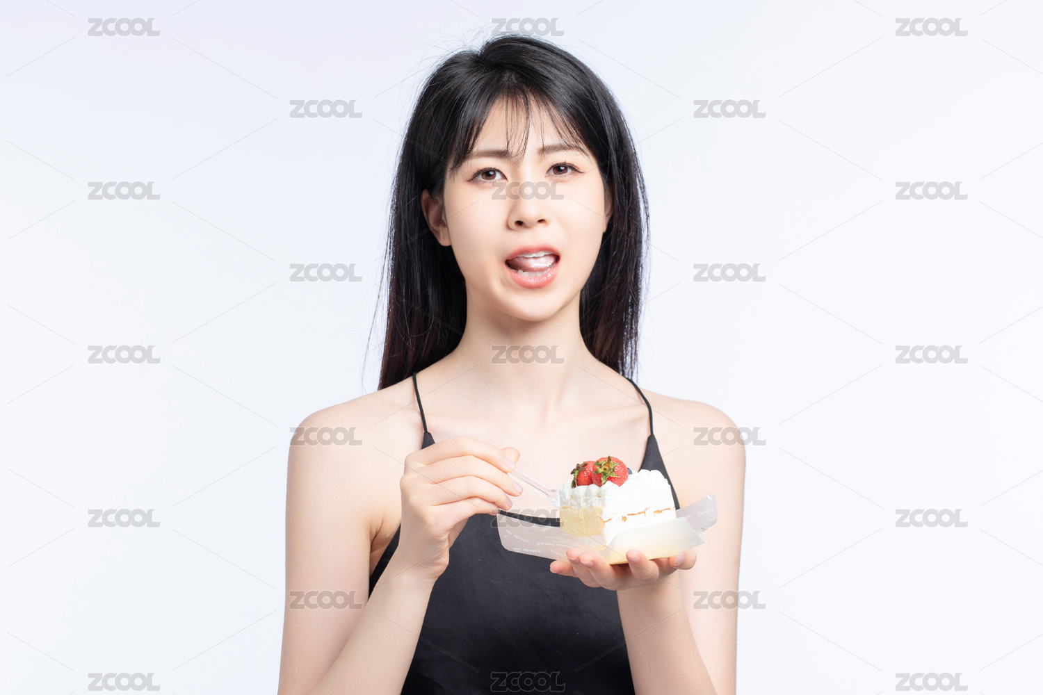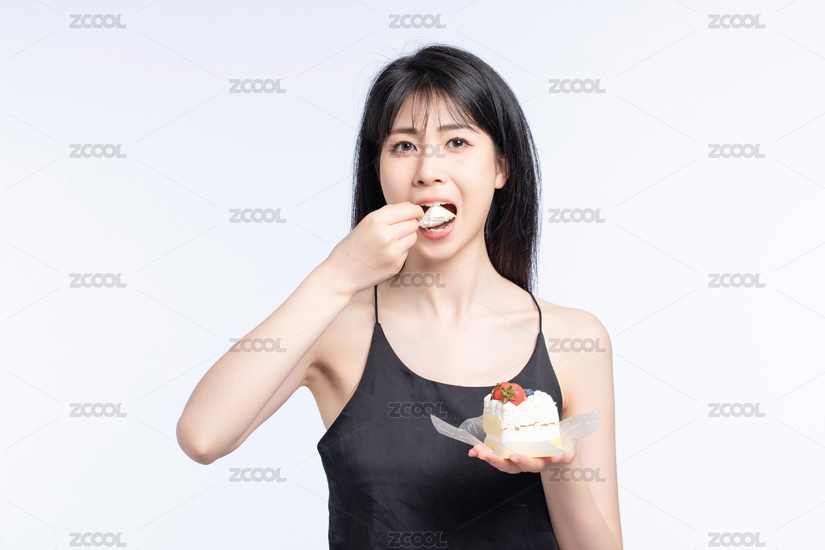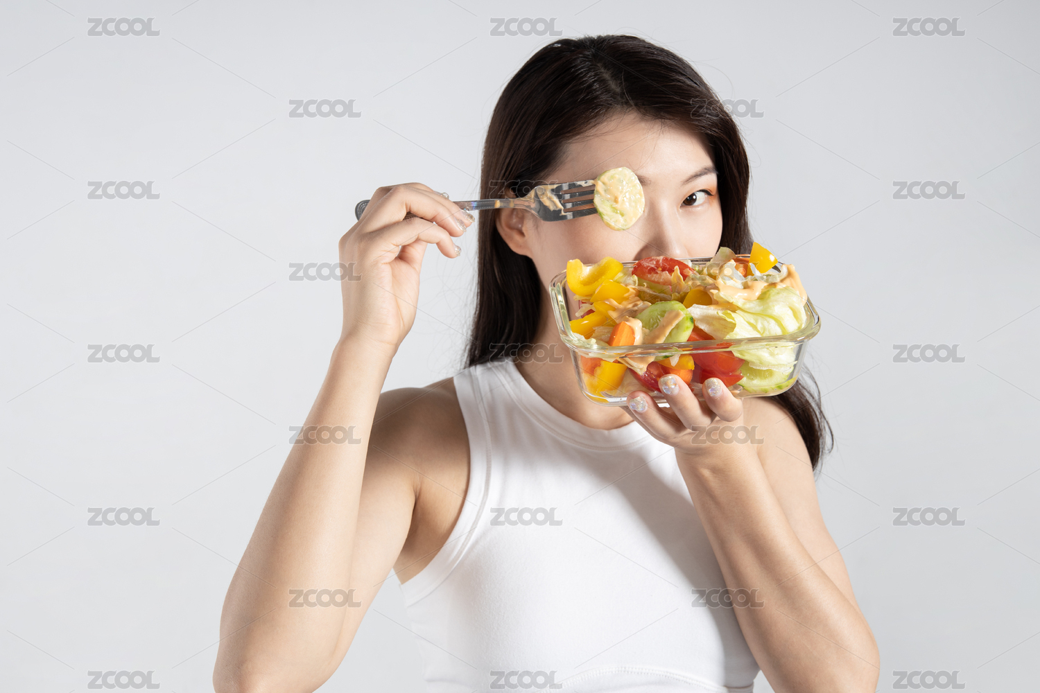 大吃特吃猪蹄块的亚洲可爱少女人像