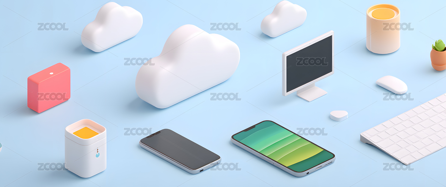 云端悬浮的云形图标与多彩方块