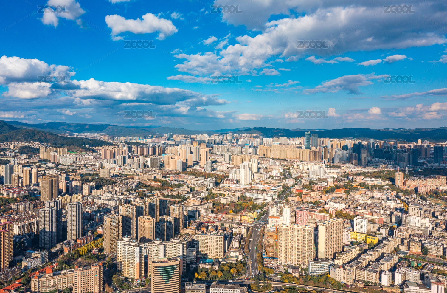 航拍云南昆明盘龙区城市天际线市区高楼大厦