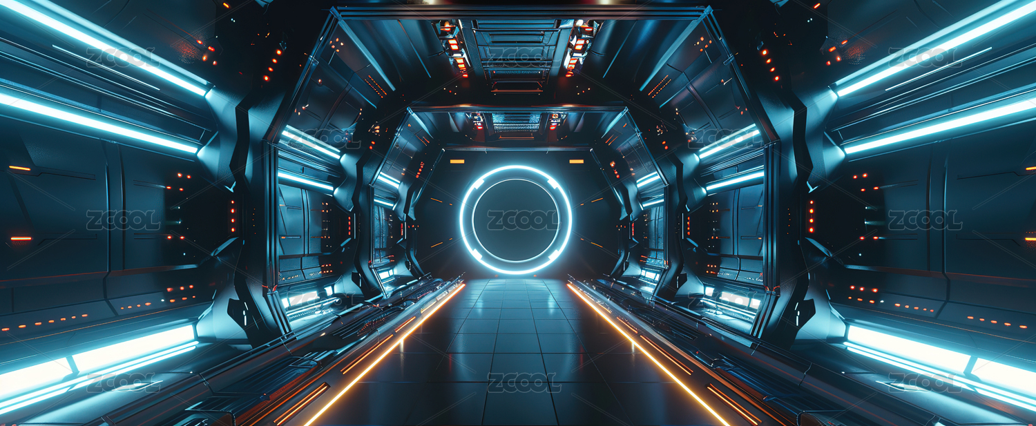 3D霓虹光圈未来科技空间感商务背景3D霓