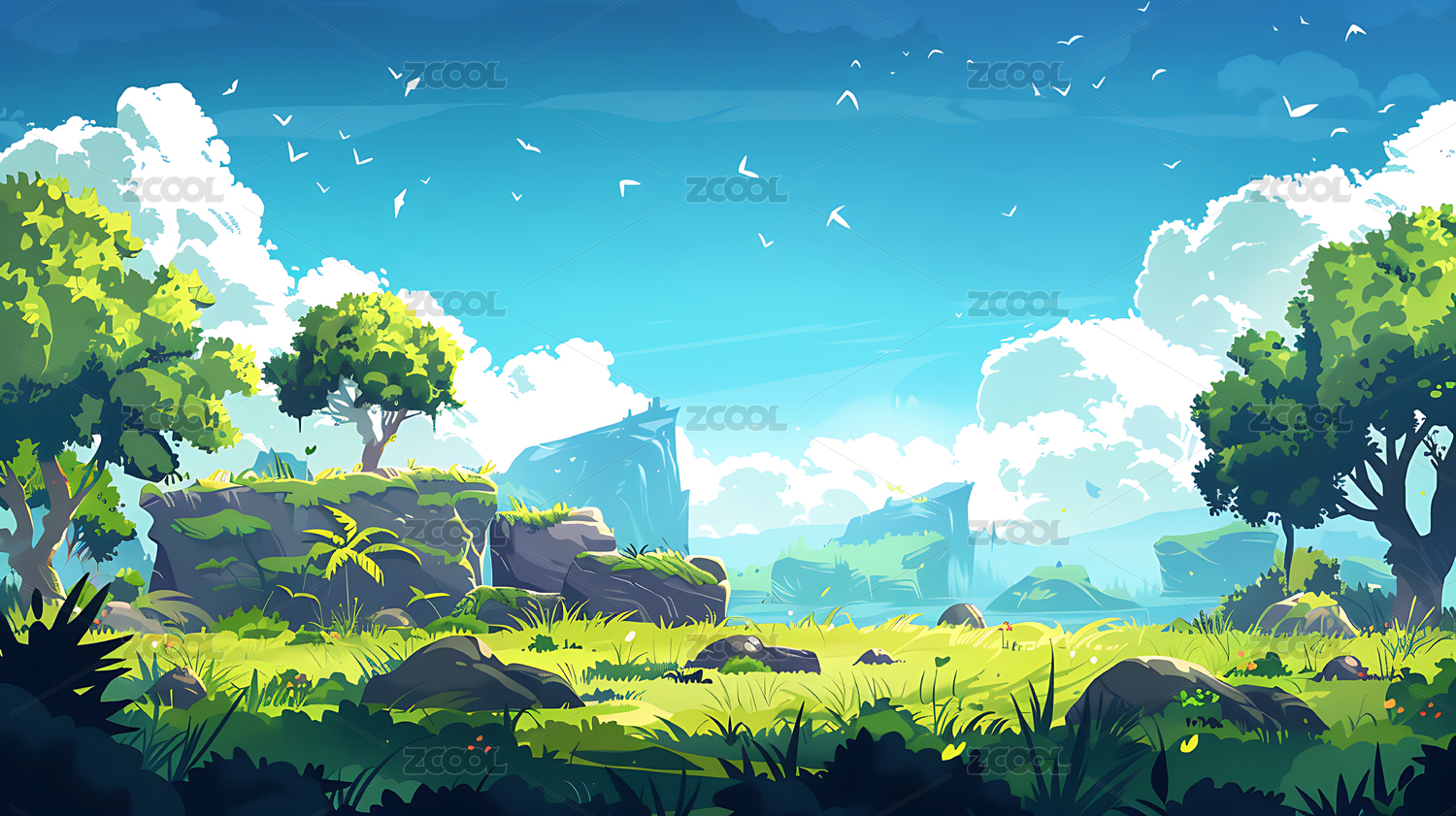 插画,卡通,游戏,动画,手游,背景,风景,自然,植物,场景