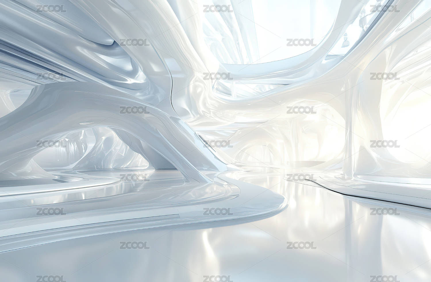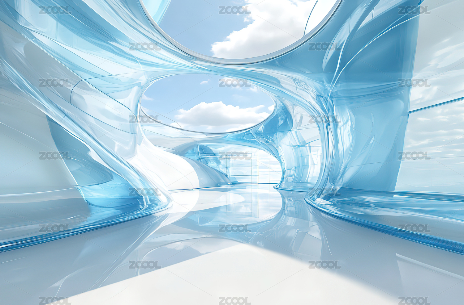 白色浅蓝梦幻曲线空间抽象未来艺术