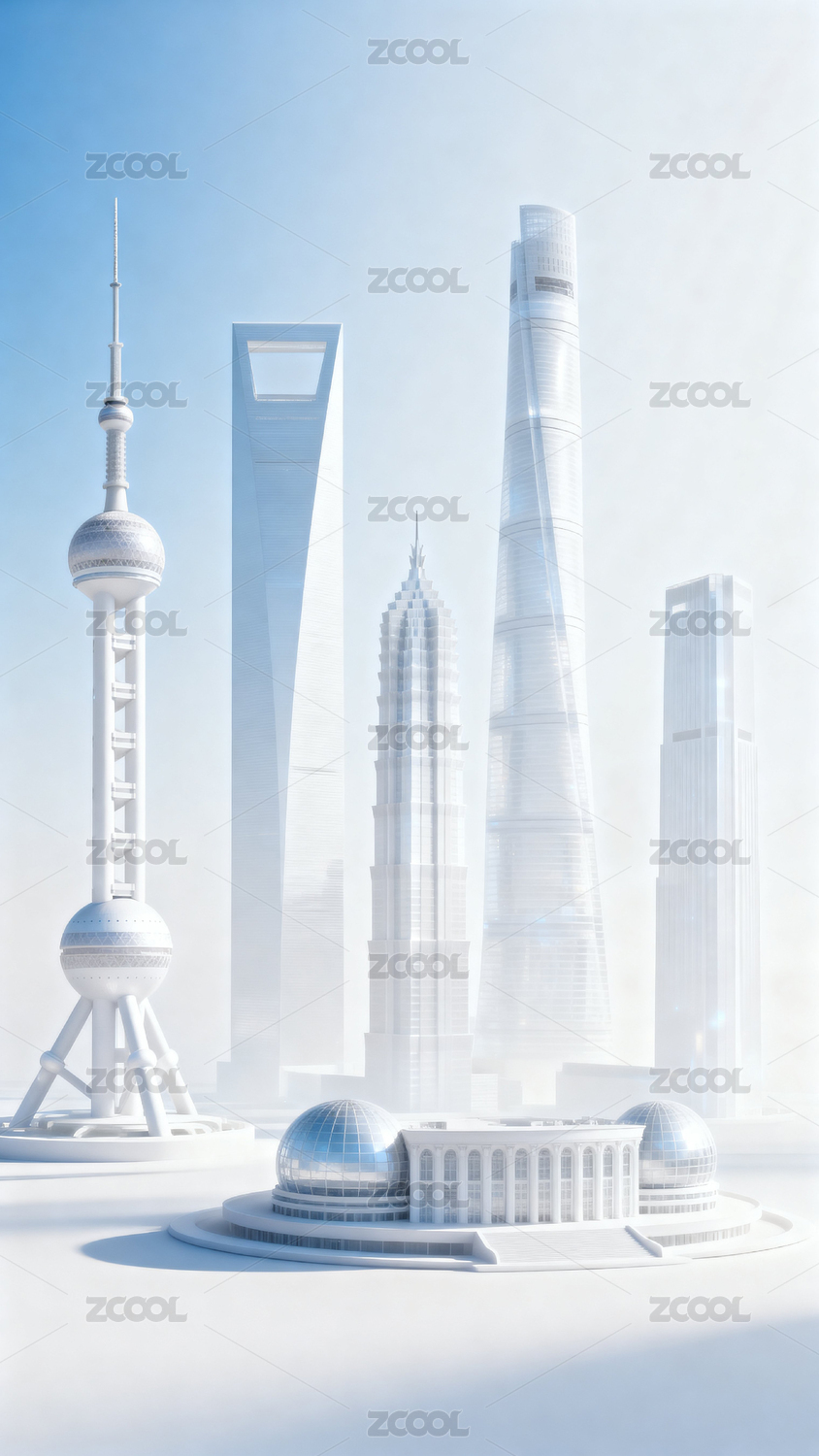 陆家嘴,矢量插画,东方明珠,上海中心大厦,环球金融中心,金茂大厦,高楼建筑,商务