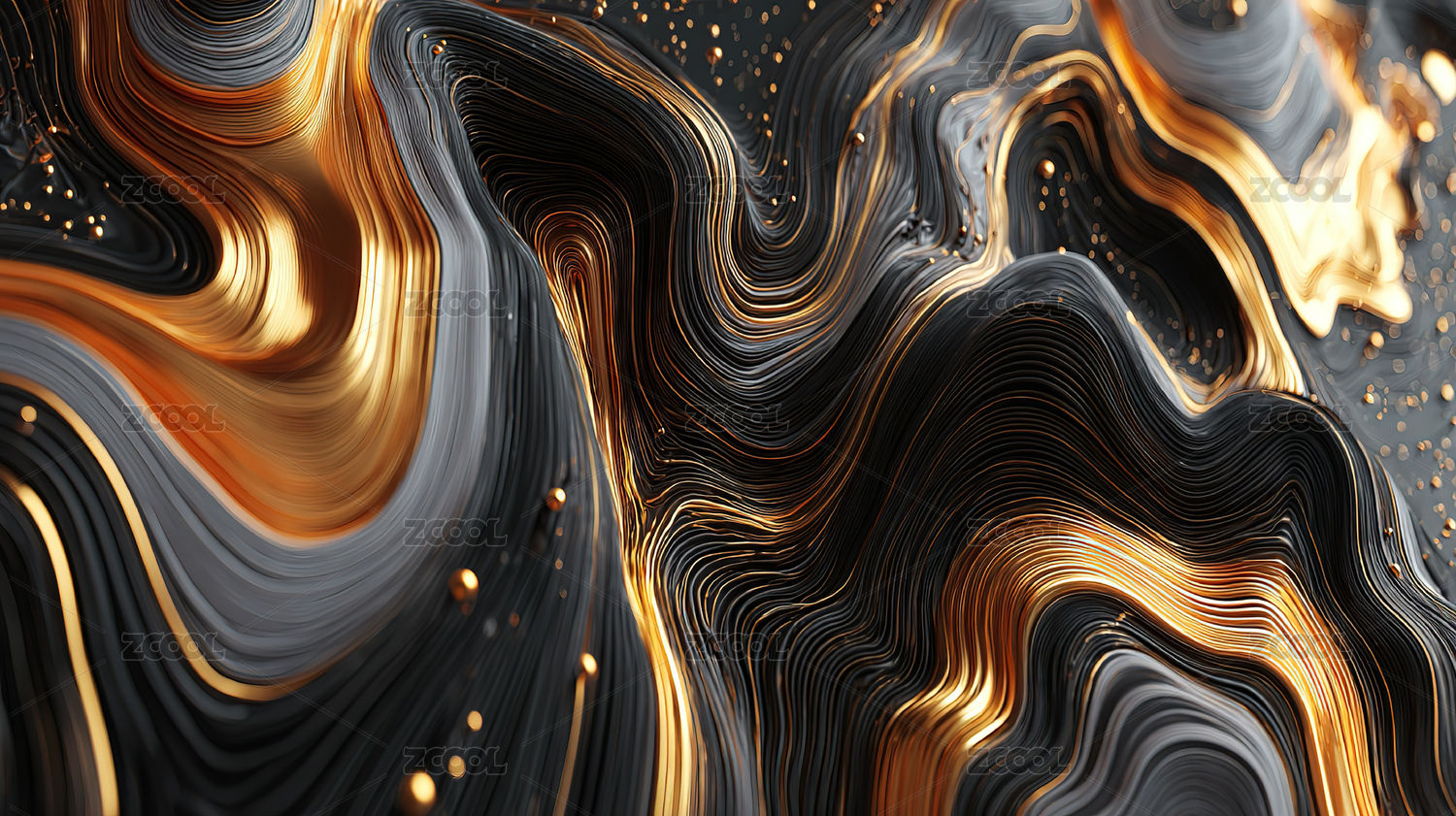 流动的金色与黑色抽象纹理