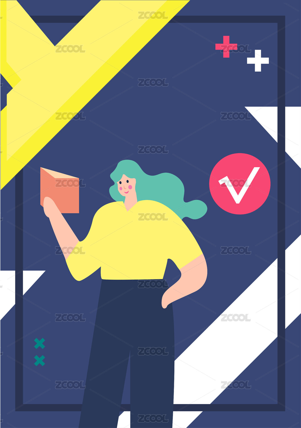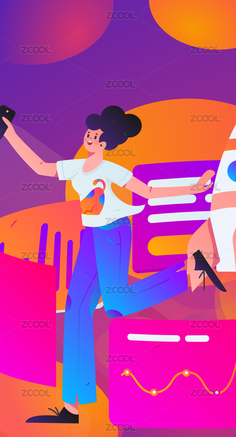 插画,设计,运营,启动页,剪纸风,扁平,女孩,女人,商务,互联网