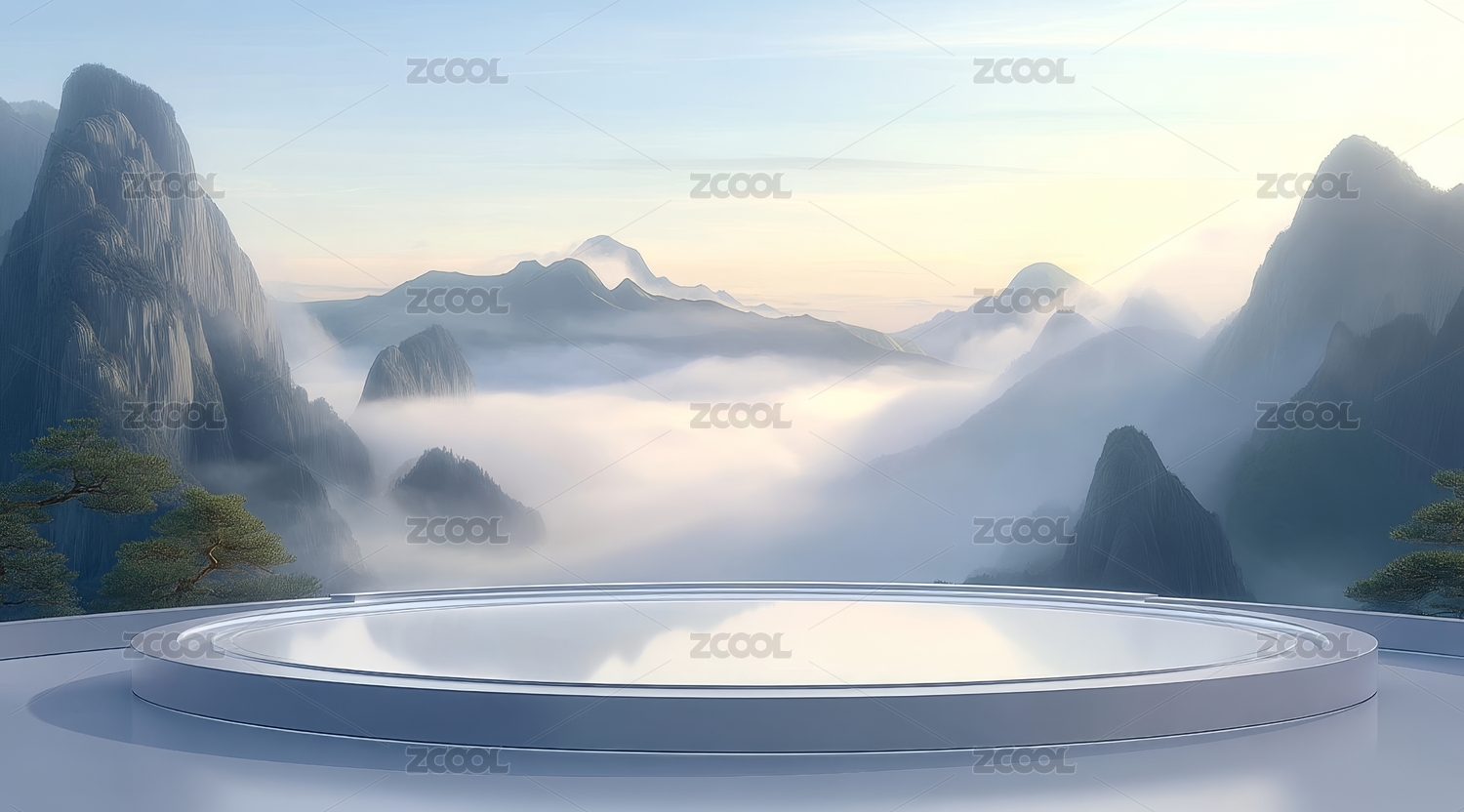 风景,中式,自然,云雾,背景,高山,宁静,户外,天空,白昼