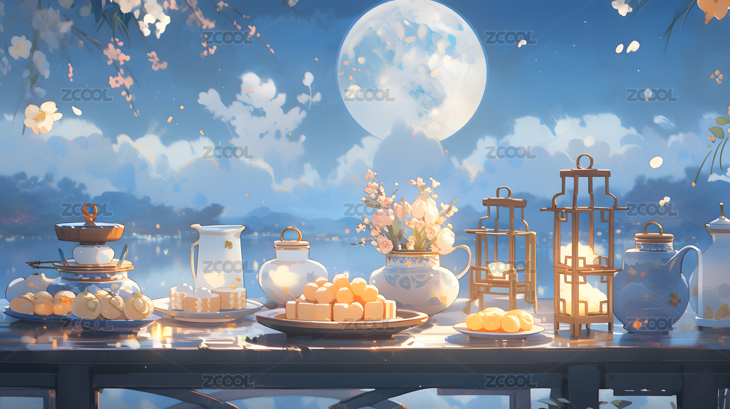 AIGC202403,中秋节,圆月,节日,庆祝,传统,秋天,秋日,夜晚,晚上