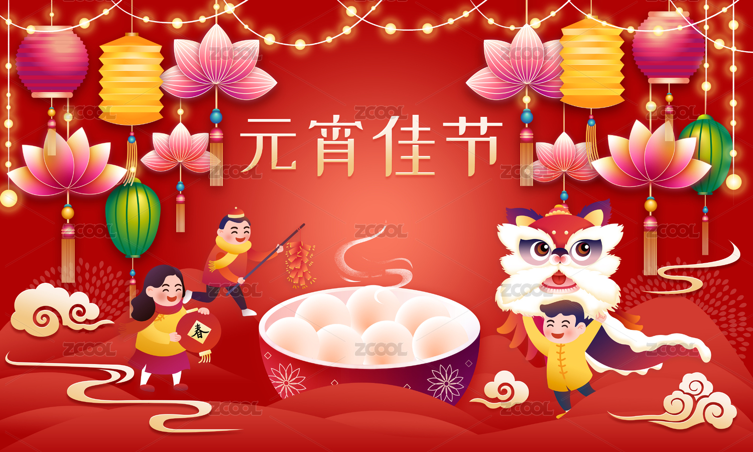 卡通,闹元宵,元宵节,灯笼,祥云,云,元宵,喜庆,碗,背景