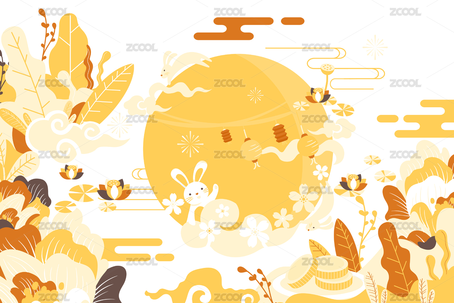 中秋节日玉兔桂花插画元素图案