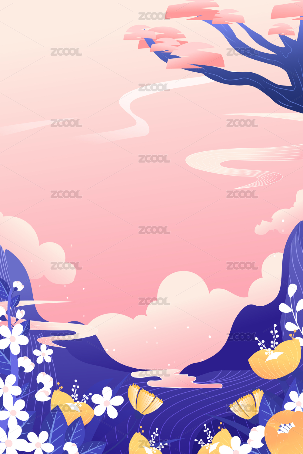 有云和花朵的纸张纹理背景
