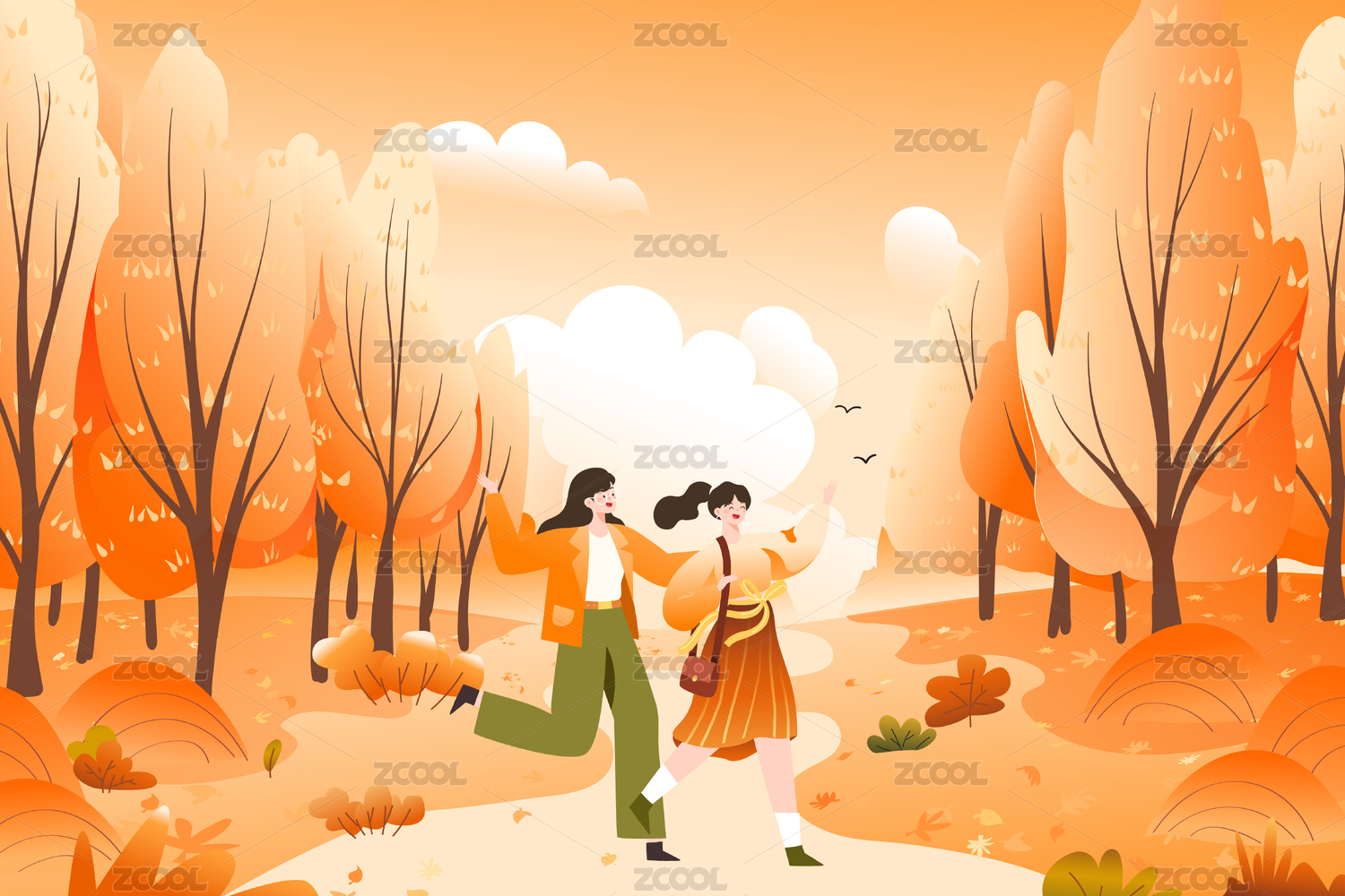 卡通女孩秋季秋天立秋二十四节气踏秋丰收
