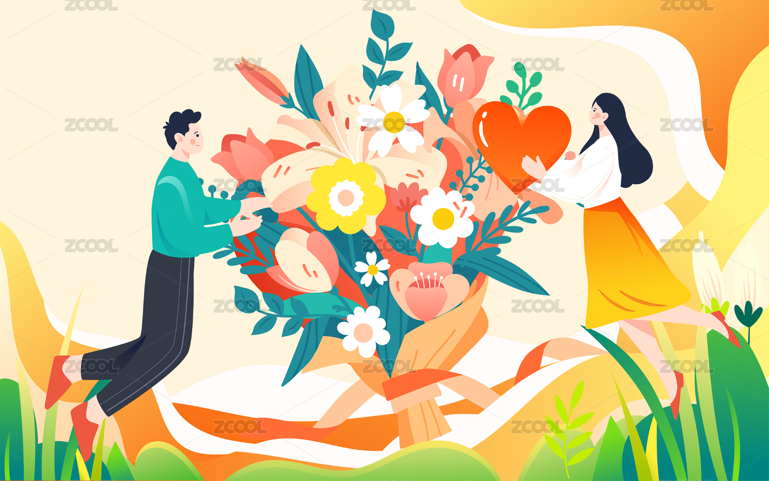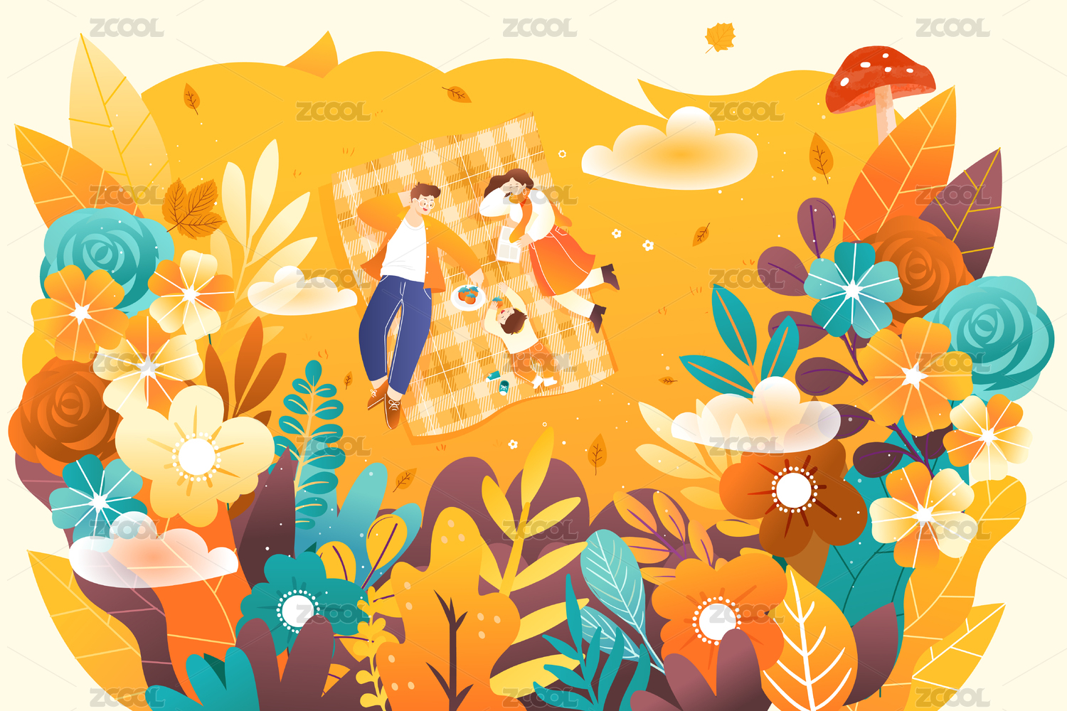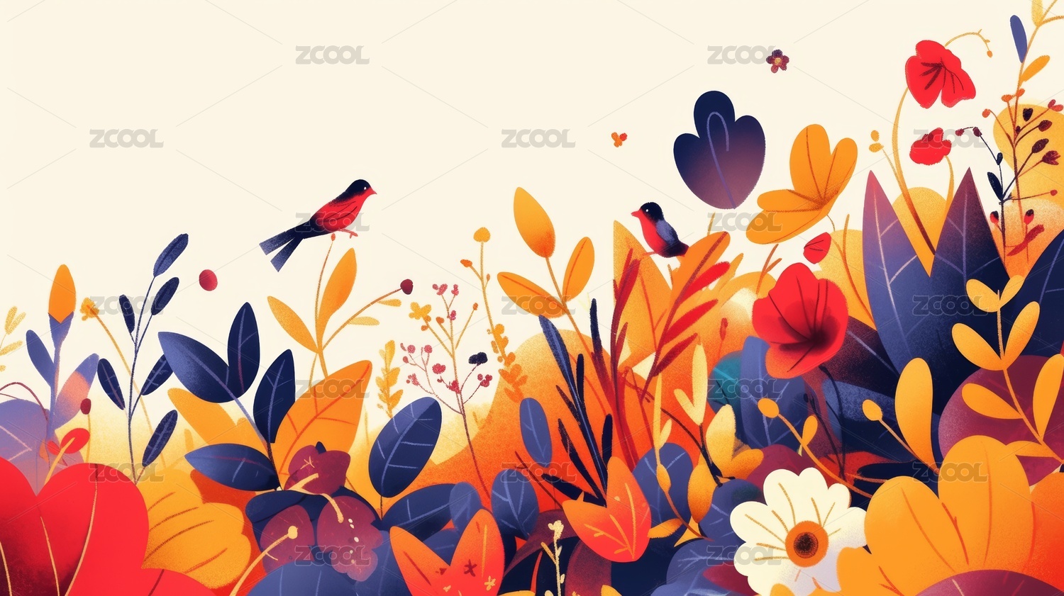 矢量,卡通,渐变,扁平,插画,插图,背景,元素,叶子,花卉