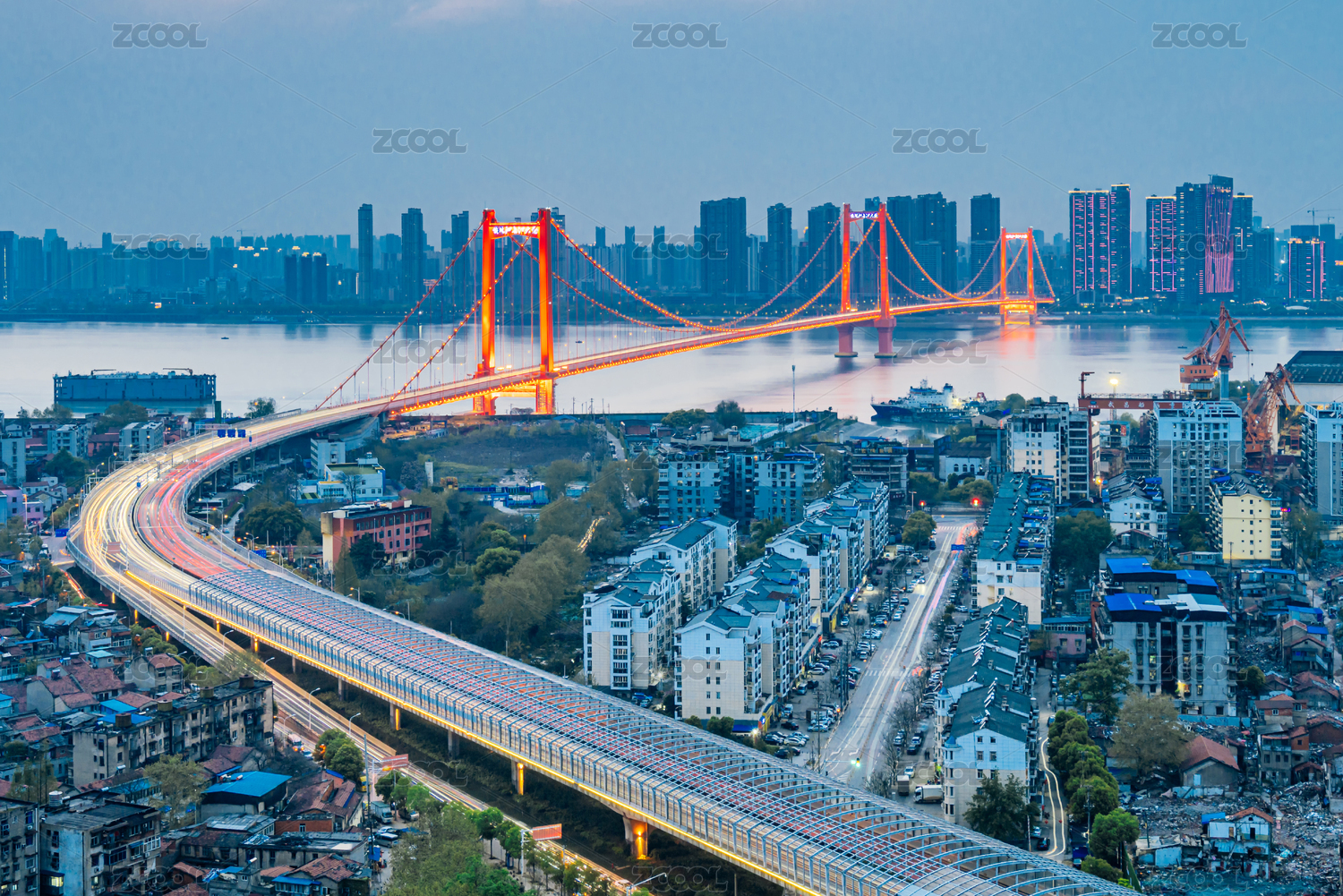 中国湖北武汉鹦鹉洲长江大桥黄昏风光