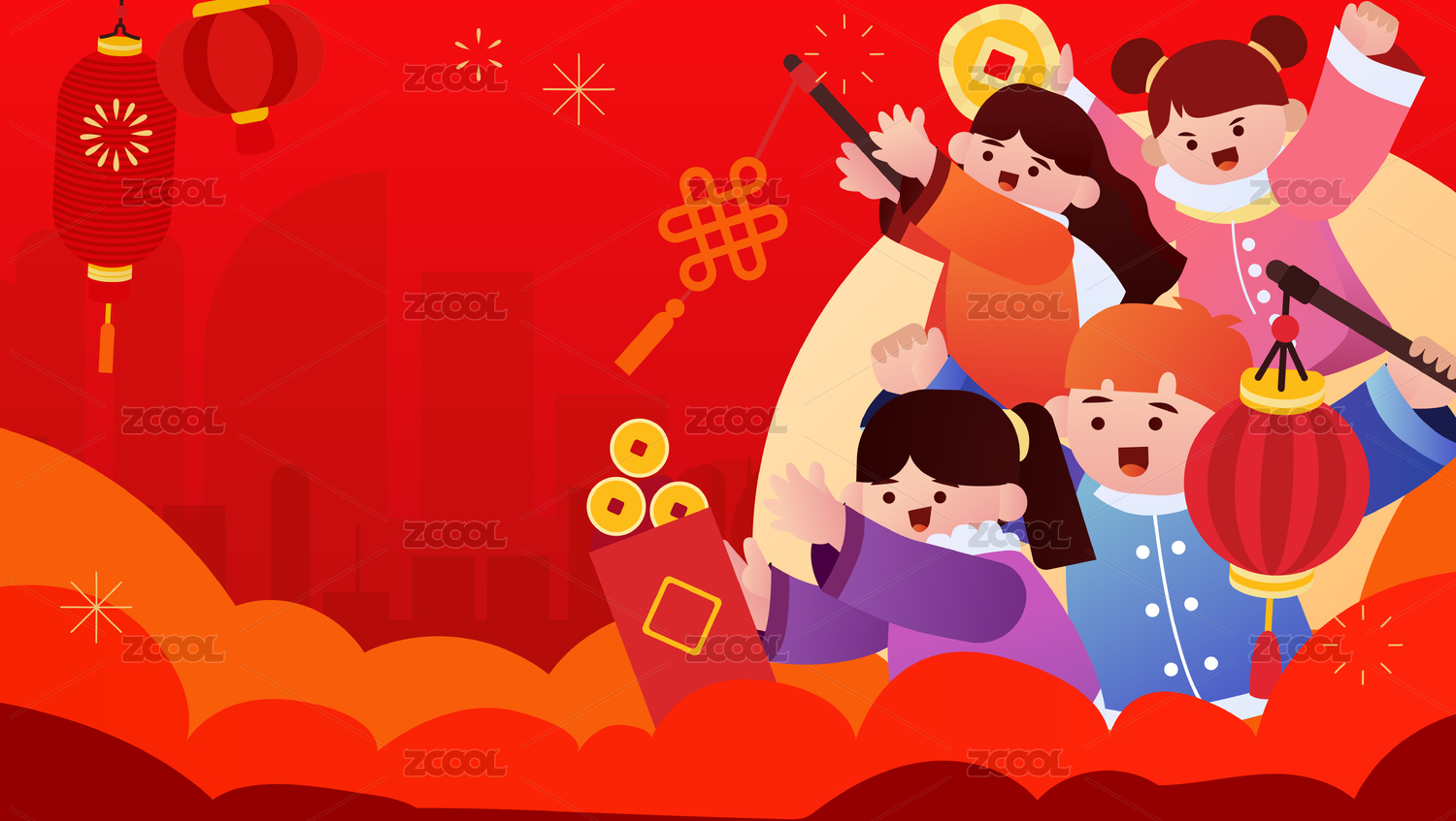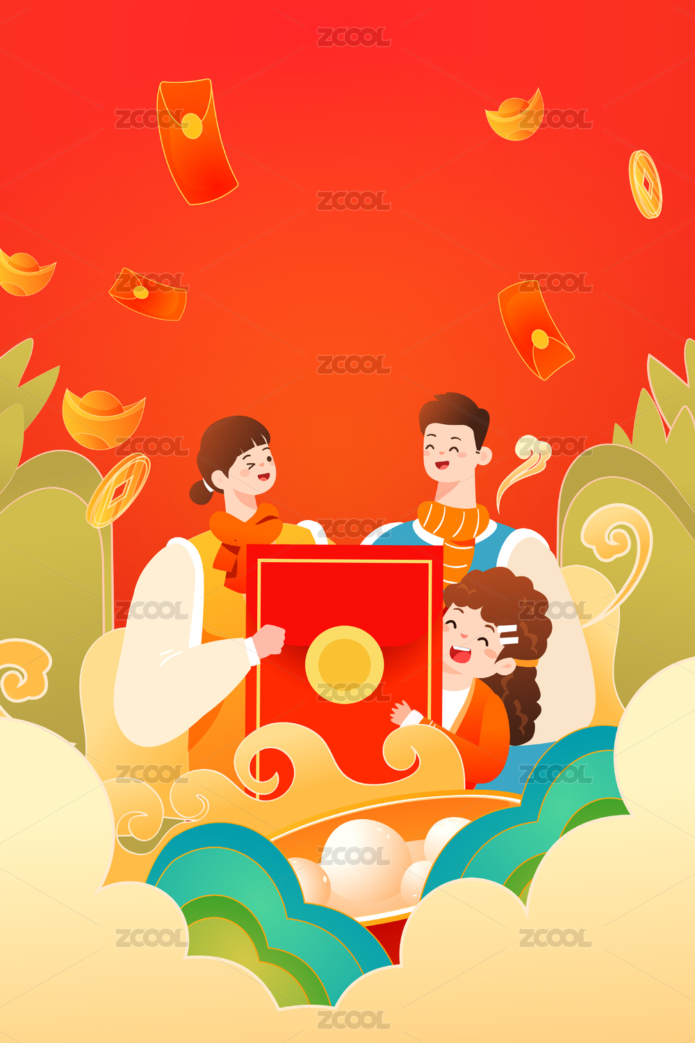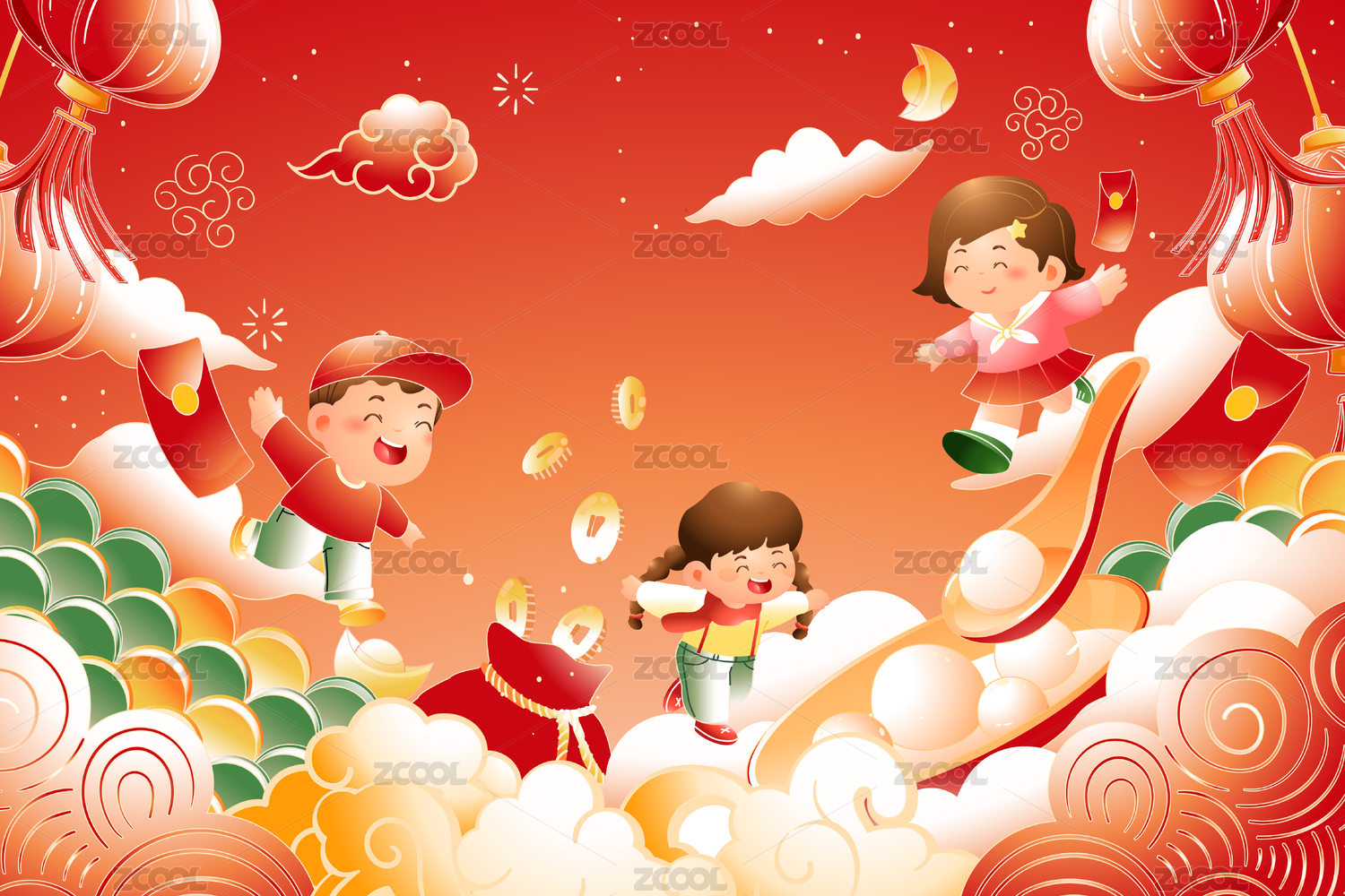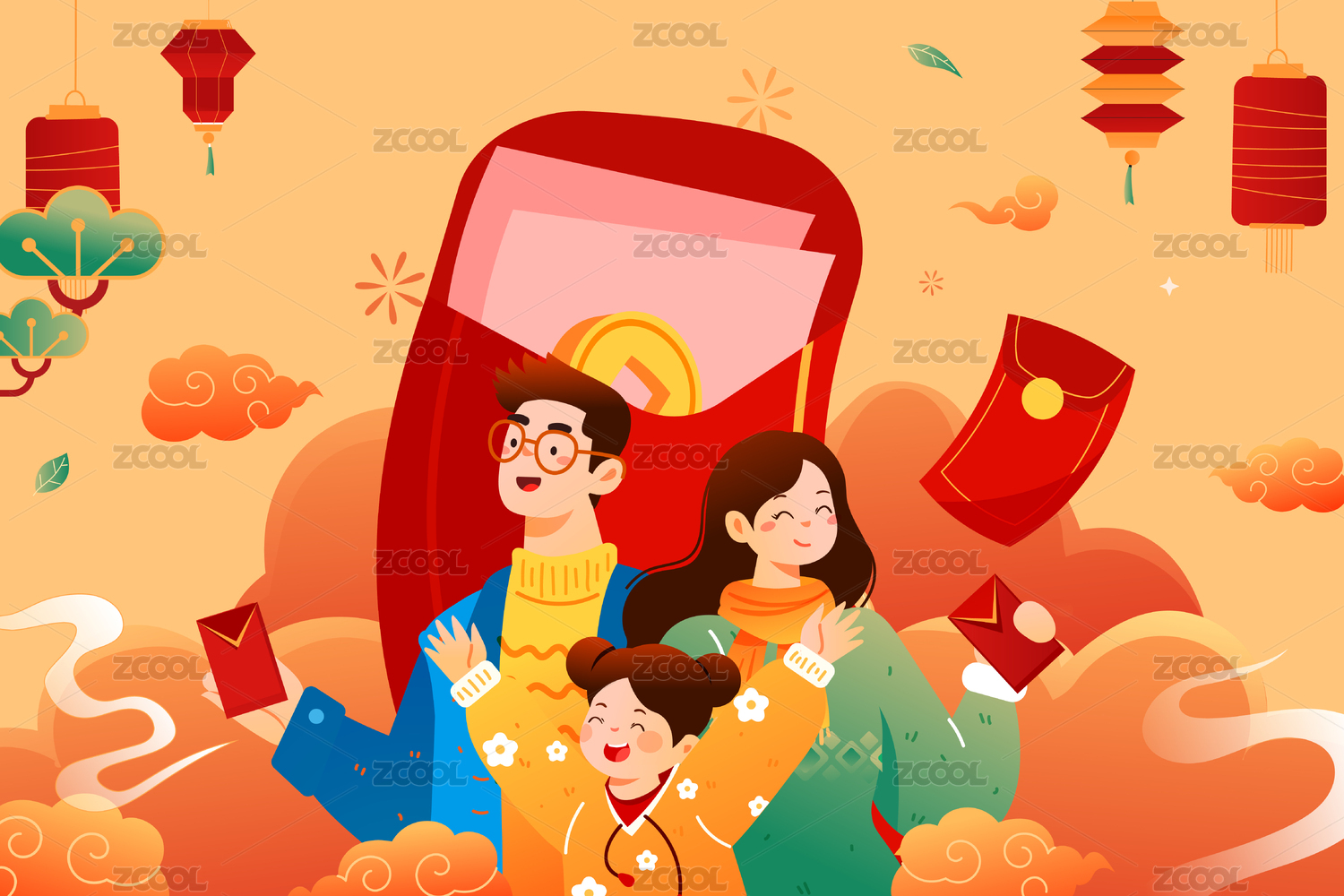 新春龙年过年人物传统喜庆矢量插画素材背景