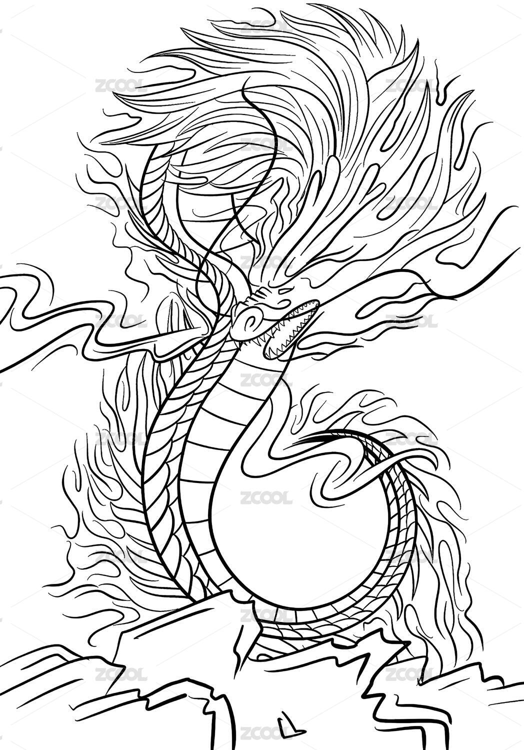 中国龙传统插画线稿草稿