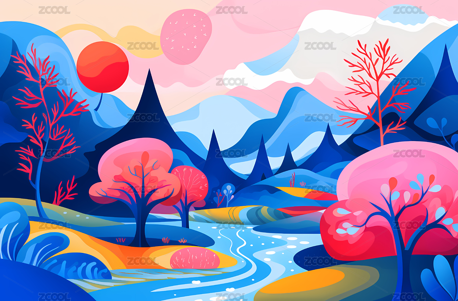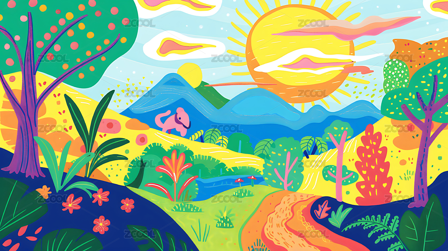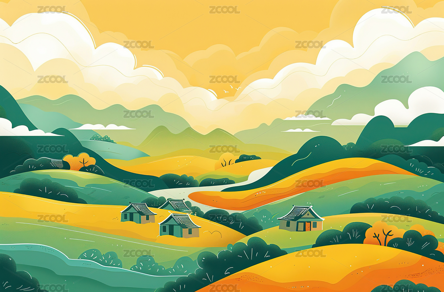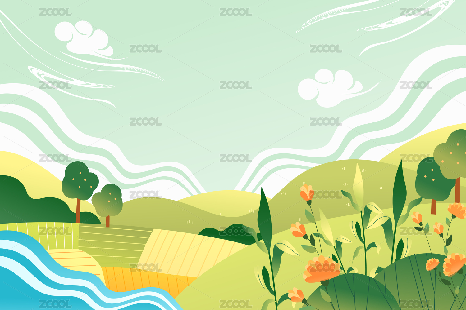 立秋节气户外旅行自然风景处暑卡通唯美插画